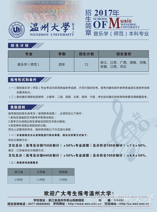 时时彩 2017年音乐学(师范)本科专业招生简章