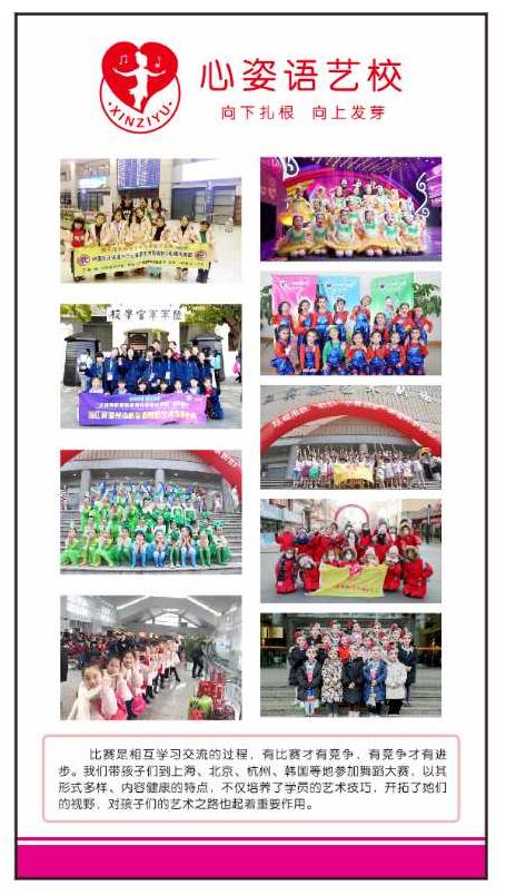 温州市心姿语舞蹈艺术培训中心是一所以快乐教育为基础,以科学性教学为先导的艺术机构。中心所有教职人员都是科班出身,师资力量严格把关。08年开办至今,得到社会各界以及家长们的一致好评。荣获“全国十佳最具影响力新锐艺术教育机构”称号,荣获“浙江省最佳人气选手培育单位”称号,荣获“文化艺术交流先进单位”称号,荣获“浙江省艺术活动优秀组织单位”称号,荣获“温州市青少年舞蹈大赛优秀组织奖”称号,荣获“北京舞蹈时时彩