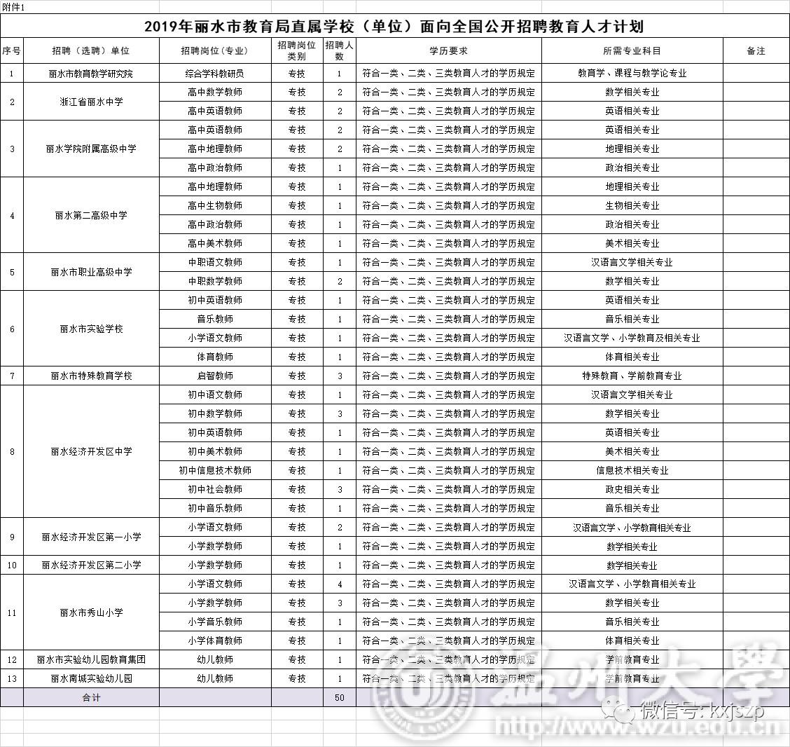 本次丽水市教育局直属13个单位公开招聘教育人才共50名,具体岗位(专业)、人数和报考资格条件详见附件1:《2019年丽水市教育局直属时时彩