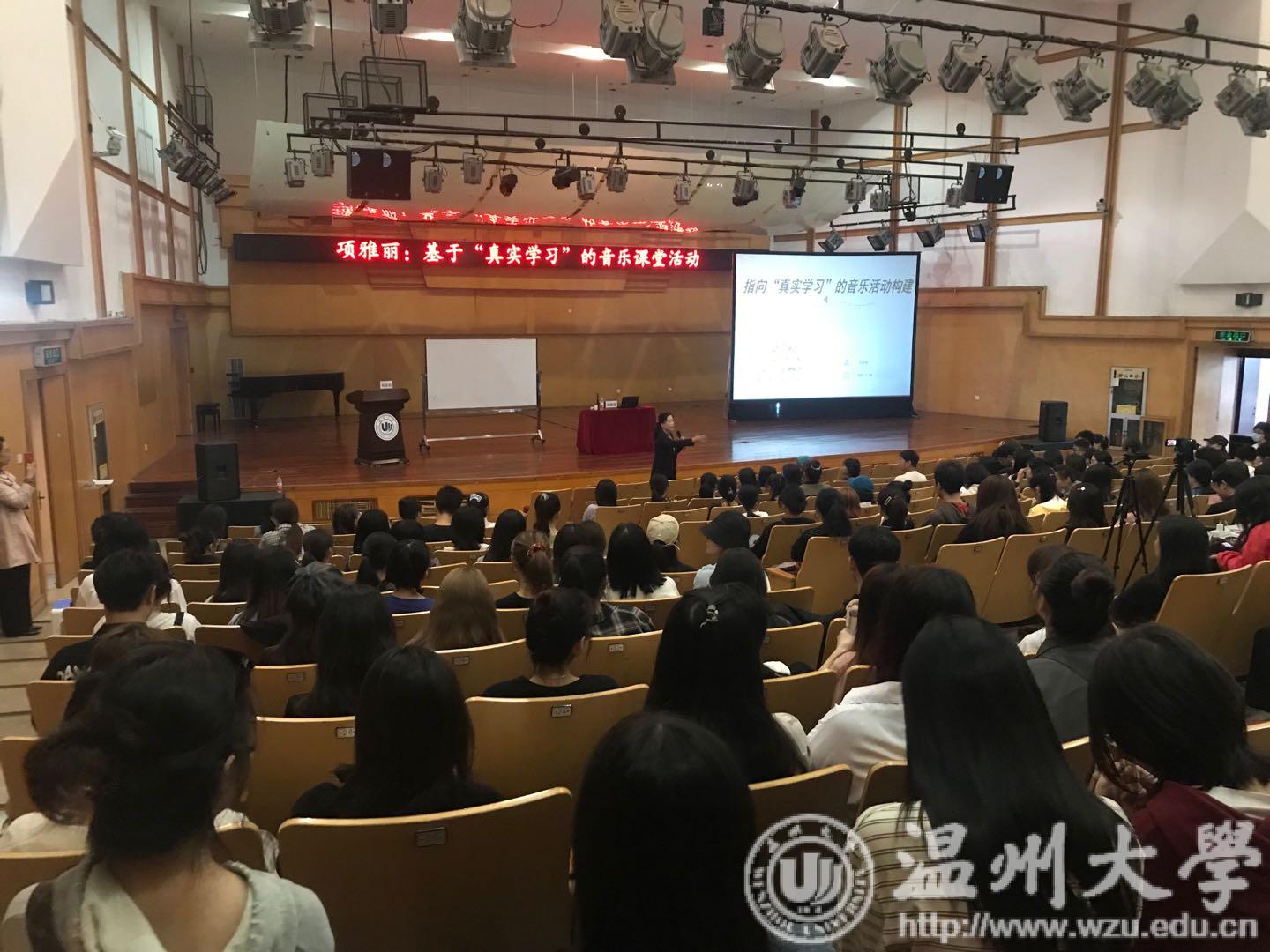 第十二届艺术周名师讲座系列活动之《“真实学习”的音乐课堂活动》主题讲座,本次讲座邀请到了温州市鹿城区教育研究院音乐研训员,浙江省音乐特级教师、中国音乐家协会会员、温州市音乐家协会副主席、市音协合唱学会会长项雅丽老师,时时彩
