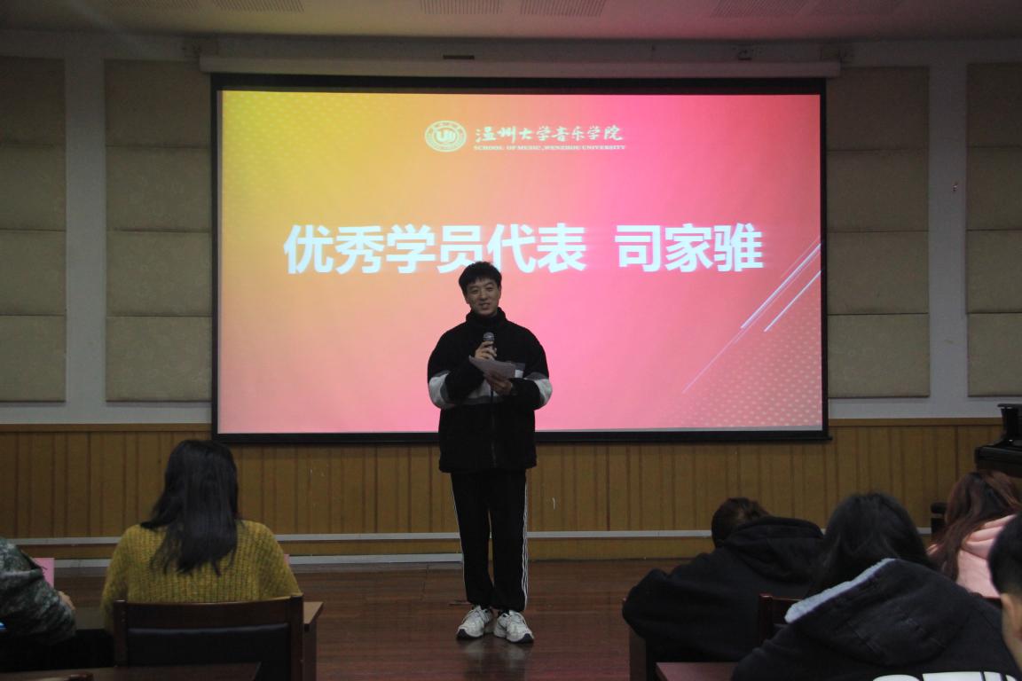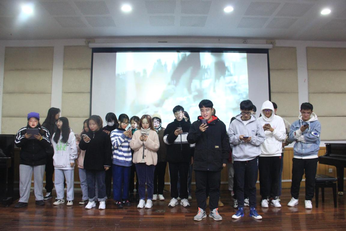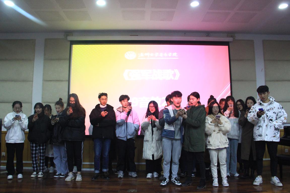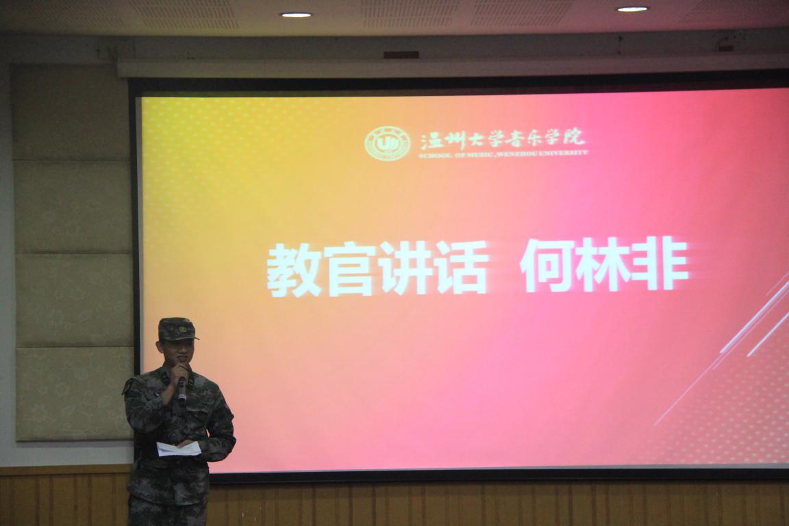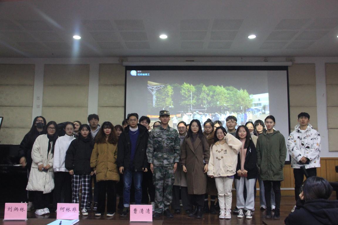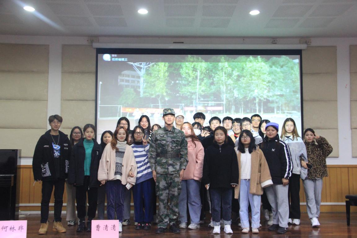于音乐楼201学术报告厅隆重举行首届军歌大赛暨2019级学生军训表彰大会。辅导员曹清清老师、教官何林非及全体19级参训学生参加。由辅导员刘炳林老师主持。
