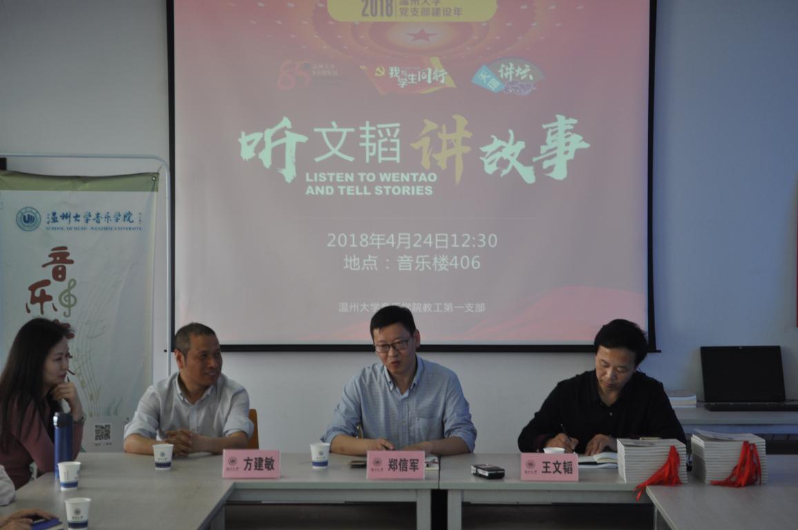 教工第一党支部在音乐楼406开展了“我与学生同行”主题党日活动——“听文韬讲缪天瑞先生的故事”。校党委委员、组织部部长郑信军,时时彩