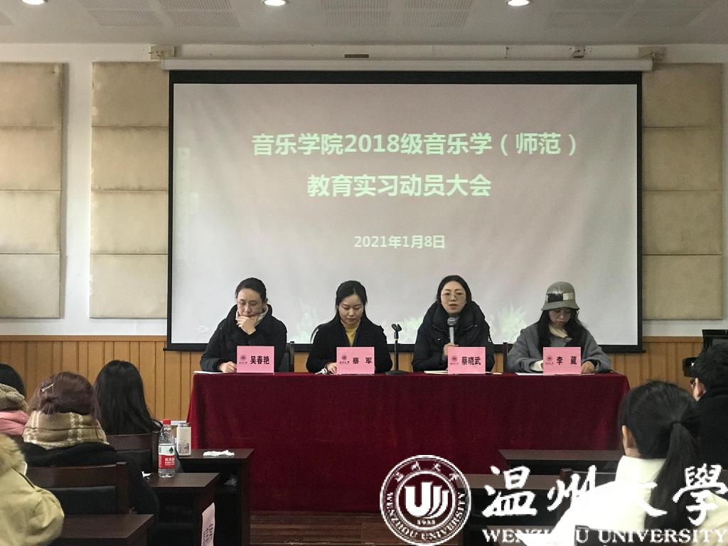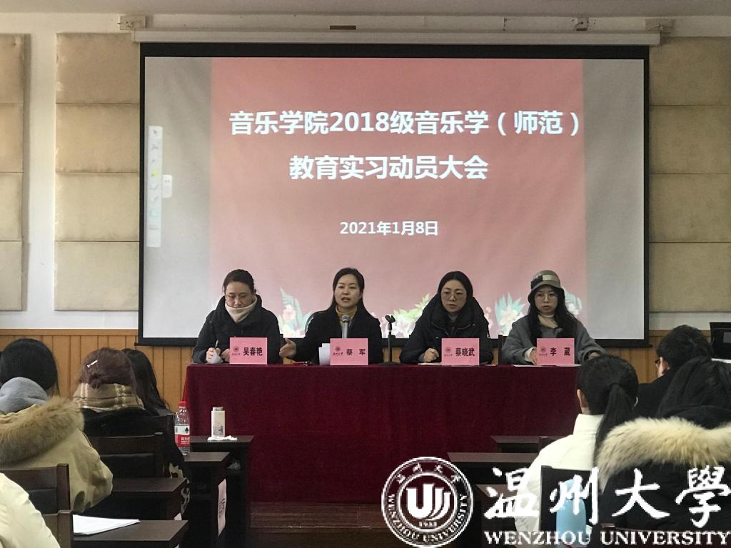 2021年1月8下午,在音乐楼201学术报告厅召开了2018级音乐学(师范)教育实习动员大会,18级音乐学(师范)本科全体学生参加了会议,时时彩