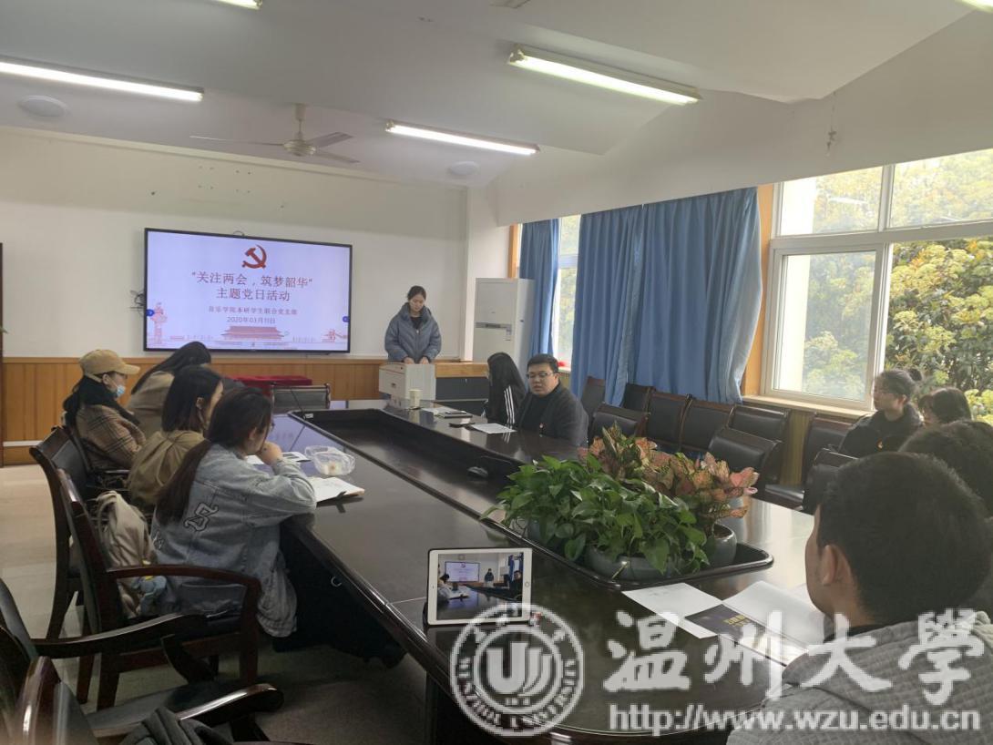 研究生、本科生党支部在音乐楼203会议室线上线下同步开展“关注两会,筑梦韶华”学习两会主题党日活动。