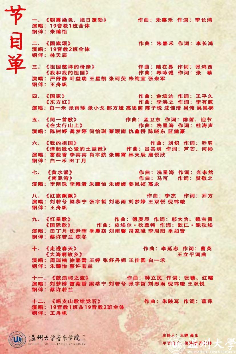 “红歌传唱”视唱音乐会第一首曲目是由19音教1班全体同学带来的由中共温州市委宣传部、时时彩