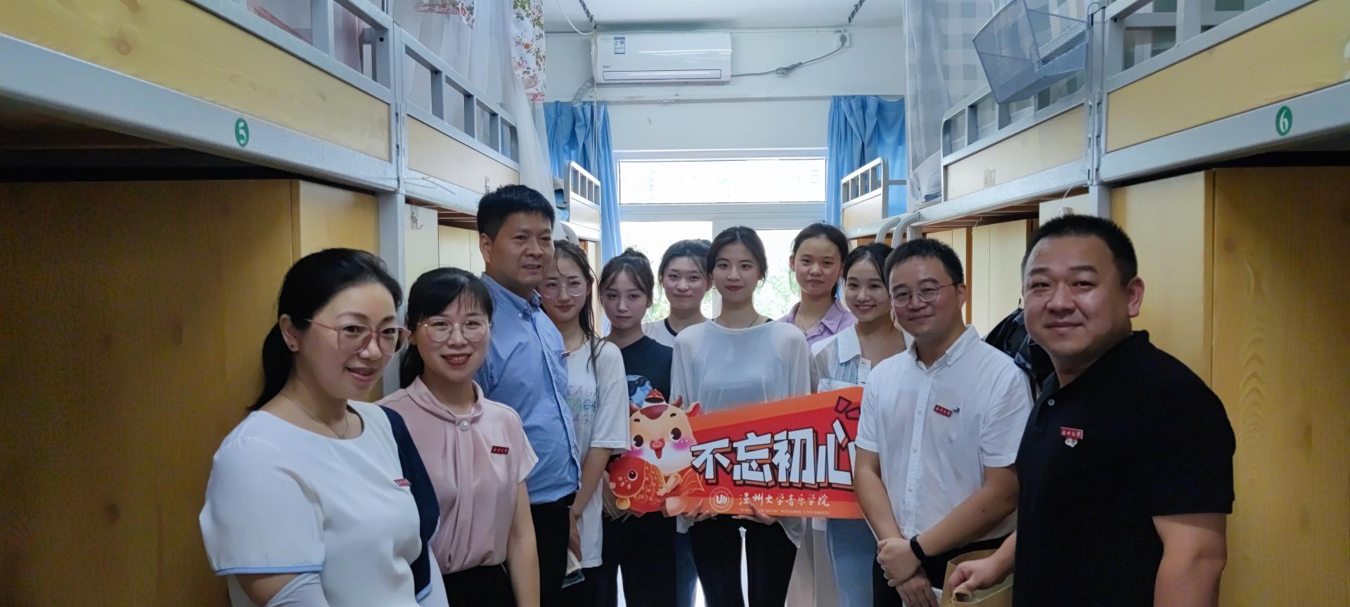 今年新增的专业,庄书记更是寄予厚望,他特别强调:作为第一届舞蹈新生,要更努力,打造属于自己的品牌。随后,他关切地询问着新生们是否适应新的环境,是否能够习惯温州的饮食习惯。同学们热情回应,并感谢校领导的关心。新生们也纷纷表示:“请庄书记放心,我们一定会更加努力,舞出水平,舞出风采!”