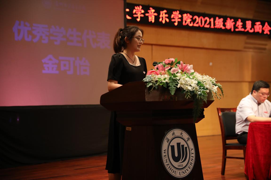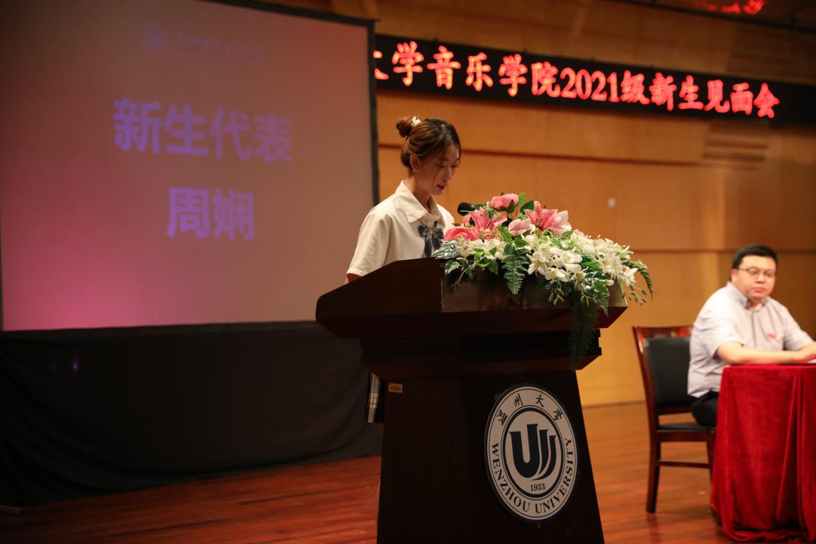 老生代表金可怡、本科新生代表周娴、研究生新生代表周籽含同学相继发言,他们都表示要脚踏实地,夯实基础,还要有自己的学习目标。不仅如此,还要有一个良好的心态,通过自律来完善自己的大学生活。研究生新生代表周籽含在发言时讲到,我们要涵养才华,练就本领。研究生阶段要对自己有更高的要求,树立明确的专业目标。