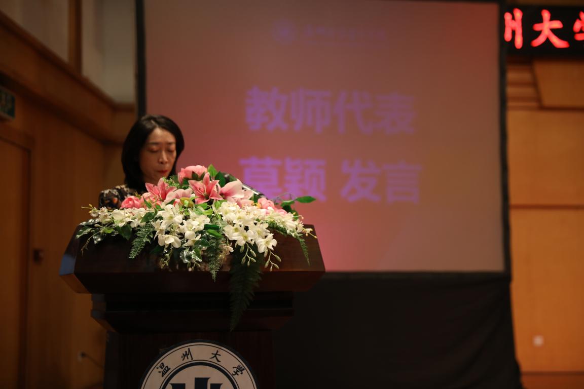 之后,教师代表莫颖发言。也对新同学提出了两点要求:第一,挑战与机遇并存。大学成就理想的地方,有着无数的机遇,也伴随着无数的挑战,同学们要时刻做好准备保持最佳状态迎接所有的挑战和机遇。;第二,是培养学习热度和态度,勤学赴实践。我们要端正态度学习,要有工匠精神。同样我们也要拥抱生活,感受其中的温度,珍惜身边的情谊,分享心中的快乐。