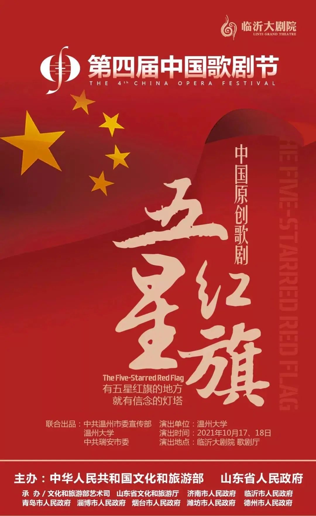 有五星红旗的地方,就有信念的灯塔。作为第四届中国歌剧节参演剧目,温州原创歌剧《五星红旗》将于10月17日-18日,在山东临沂大剧院连演两场。