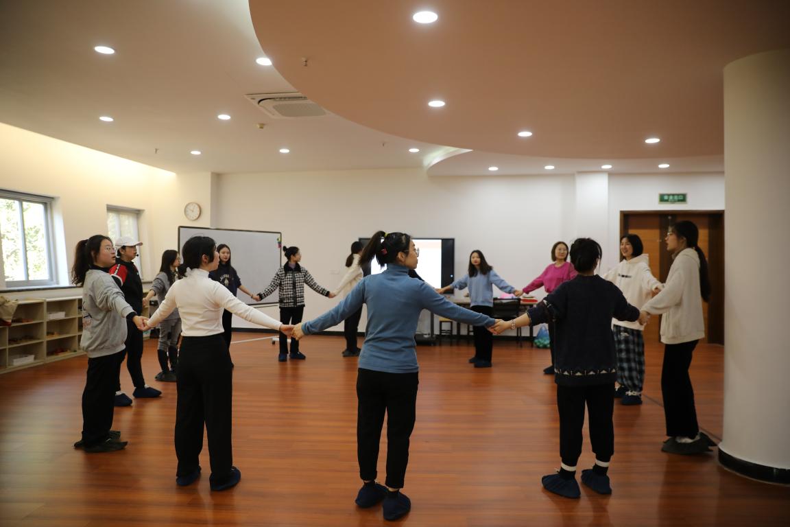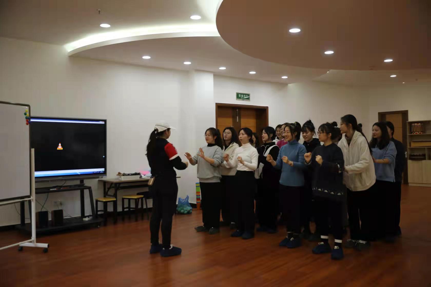 教师李葳于大学生活动中心A203-3展开了关于《奥尔夫教学法的本土化实践》的课程,有很多同学与老师前往观看学习。