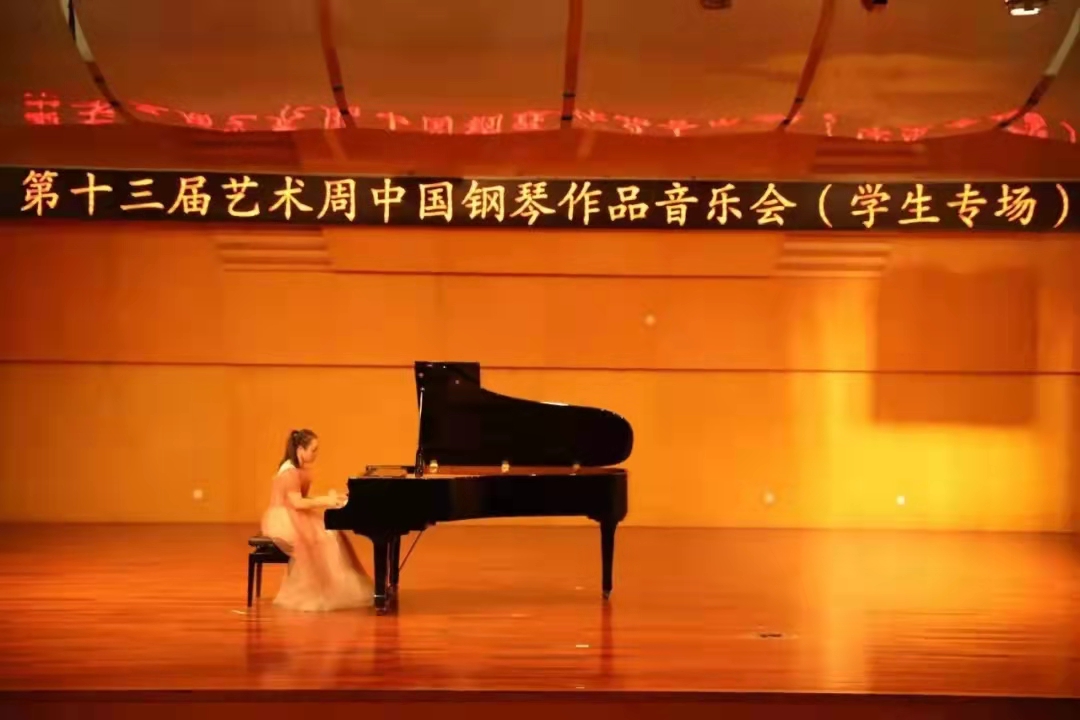 于天瑞音乐厅举办第十三届艺术周中国钢琴作品音乐会。参加本次音乐会演出的同学有21音研王鸯鸯、19音教3班郭酉香、20音教1班的谢多佳、王烁等同学。