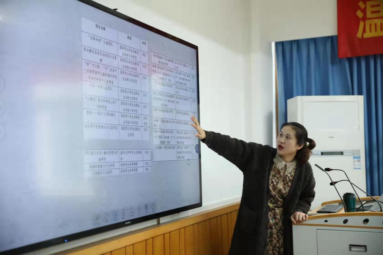 同学成功立项的课题,对选题的原则和方法展开细致分析。张老师认为选题要结合以下四个方面:即社会实践(如公益、禁毒、反诈等);地方资源(如瓯剧、李子敏、南戏、永嘉昆曲、缪天瑞、陈田鹤等);时时彩