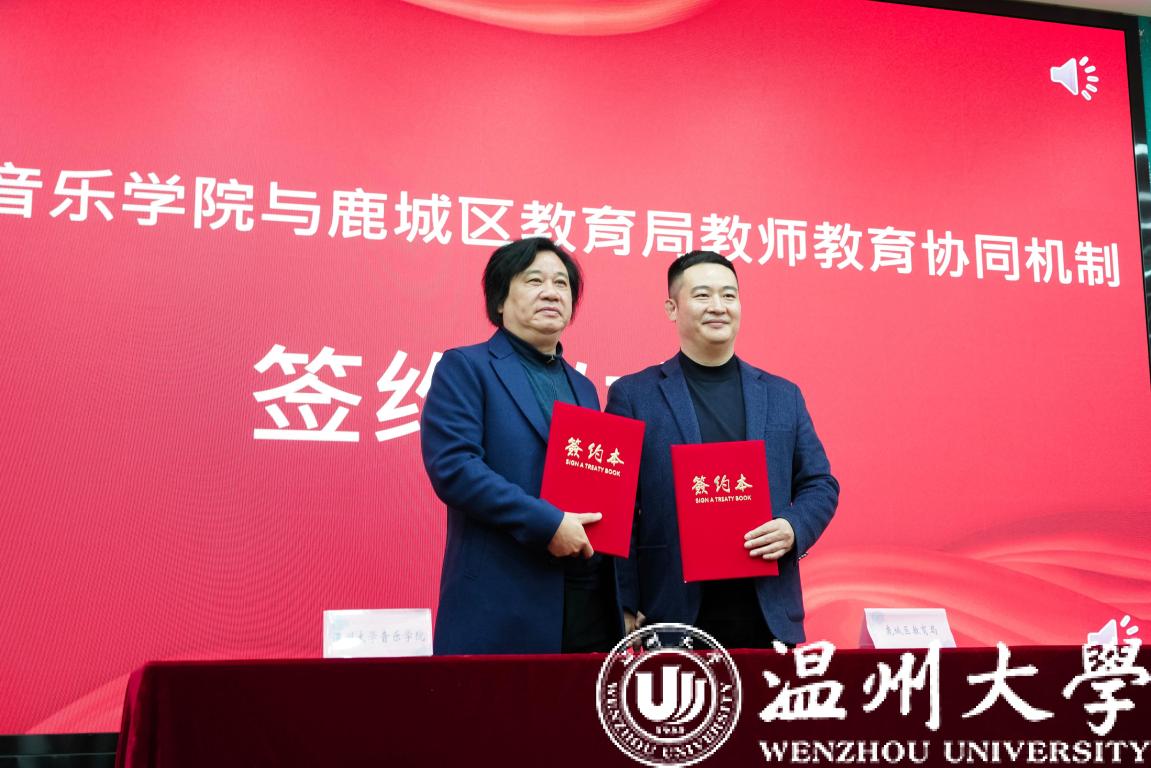 与鹿城区教育局签订了教师教育协同机制协议。双方携手创建“新师范”背景下的教师教育协作共同体,建立三位一体协同育人的模式,打通校地壁垒、知识与应用之间的藩篱,共同培养卓越的音乐教育工作者的师资力量,打造新时代高素养音乐教师队伍。