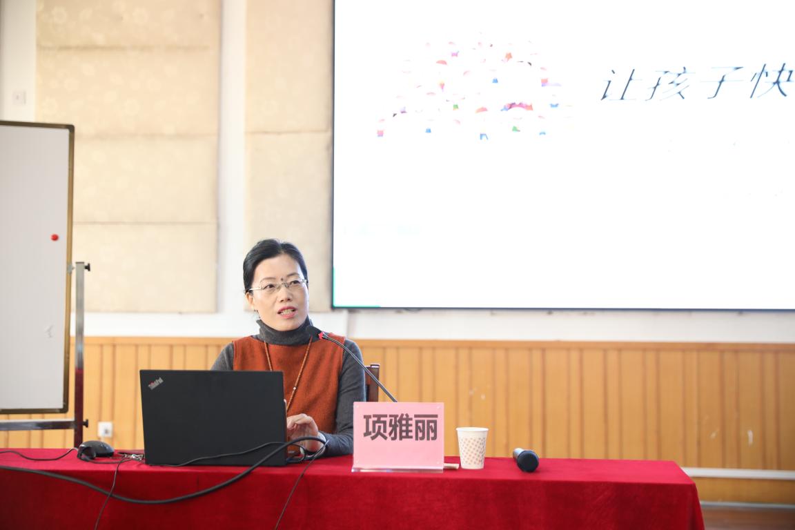 本次讲座在热烈的气氛中开始,项雅丽老师以“让孩子快乐地歌唱”为主题,以深入浅出的道理和生动形象的案例,对基于试听体验的课堂合唱教学的问题进行了阐述。