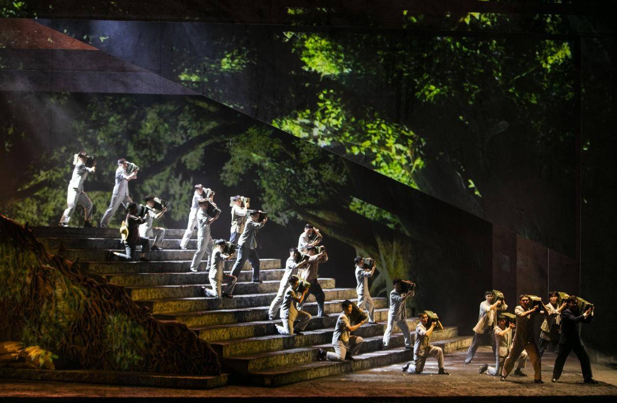 校友曾联松先生的感人故事。《五星红旗》以曾联松的咏叹调作为情感支撑点,融合了欧洲歌剧与中国民族歌剧的特点,以各种形式的重唱作为推动力,穿插运用宣叙调、合唱、器乐等艺术形式,将其进行有机连接,逐渐将音乐与剧情推向高潮。