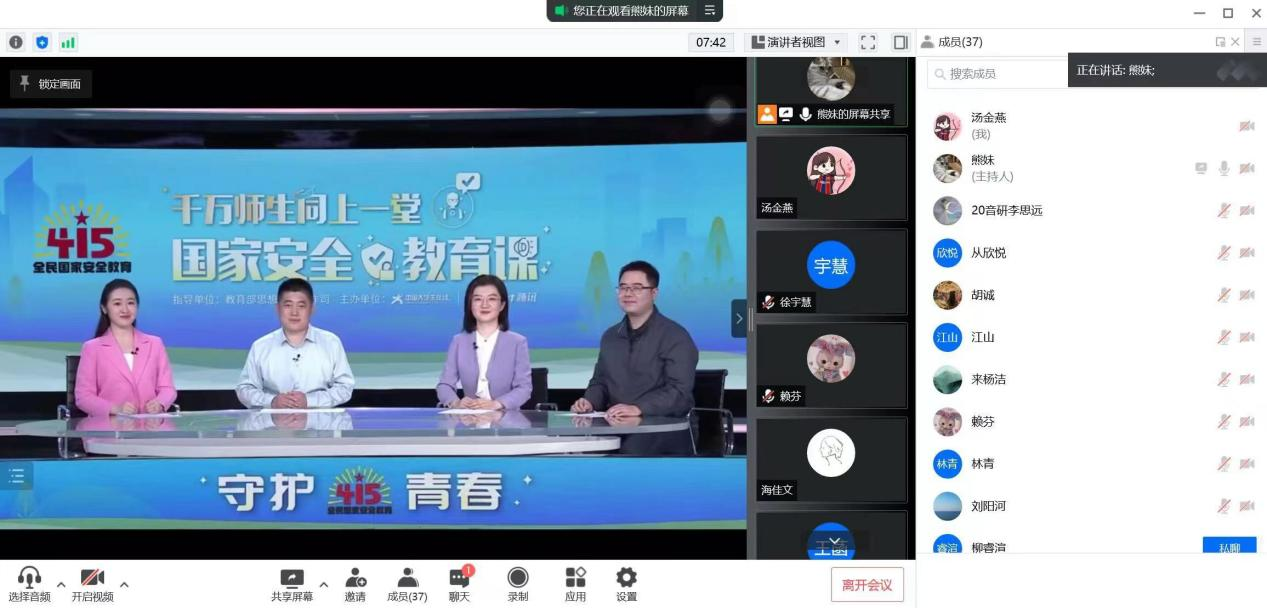 学习会上首先观看学习了中国大学生在线发布的2022年国家安全教育公开课以及中国反邪网发布的警惕邪教对大时时彩
