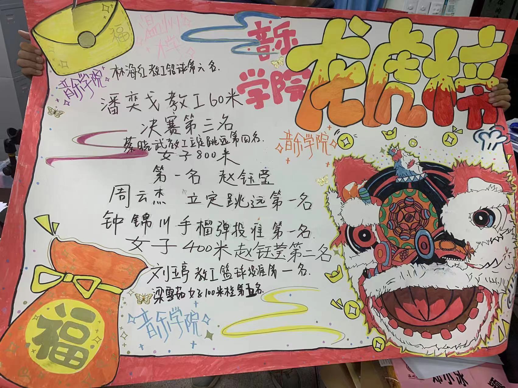 教工组:林海红老师教工铅球第六名,潘奕戈老师60米决赛第三名,蔡晓武老师教工立定跳远第四名,刘玉亭老师教工篮球投准第一名,钟锦川老师手榴弹投准第一名,周云杰老师立定跳远第一名。