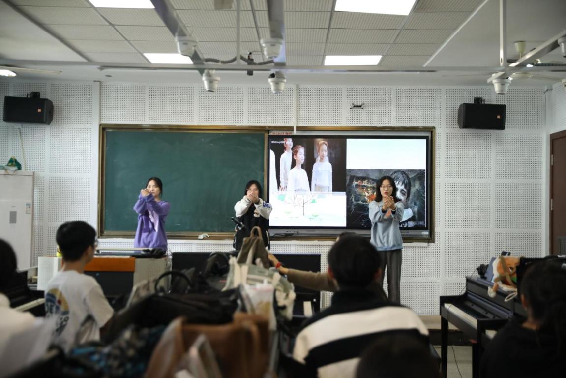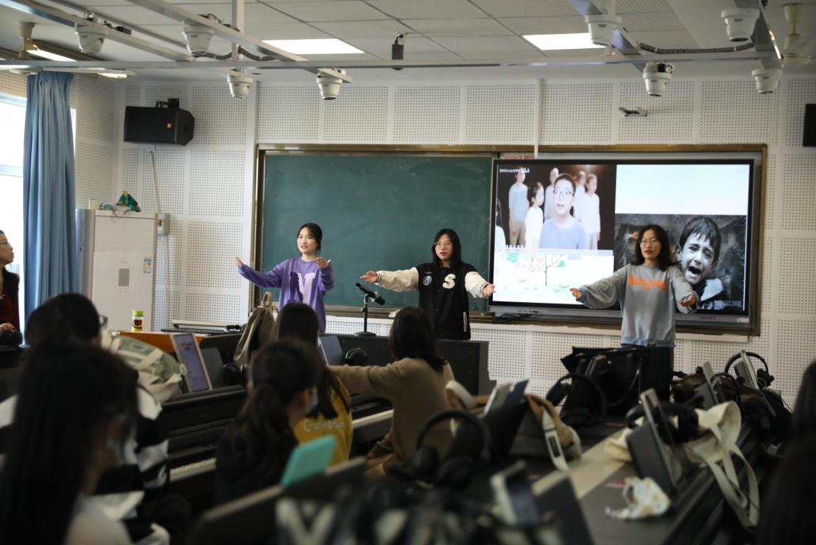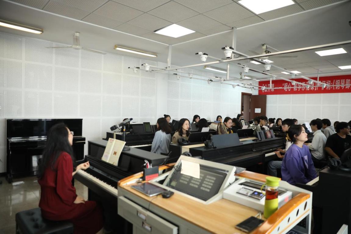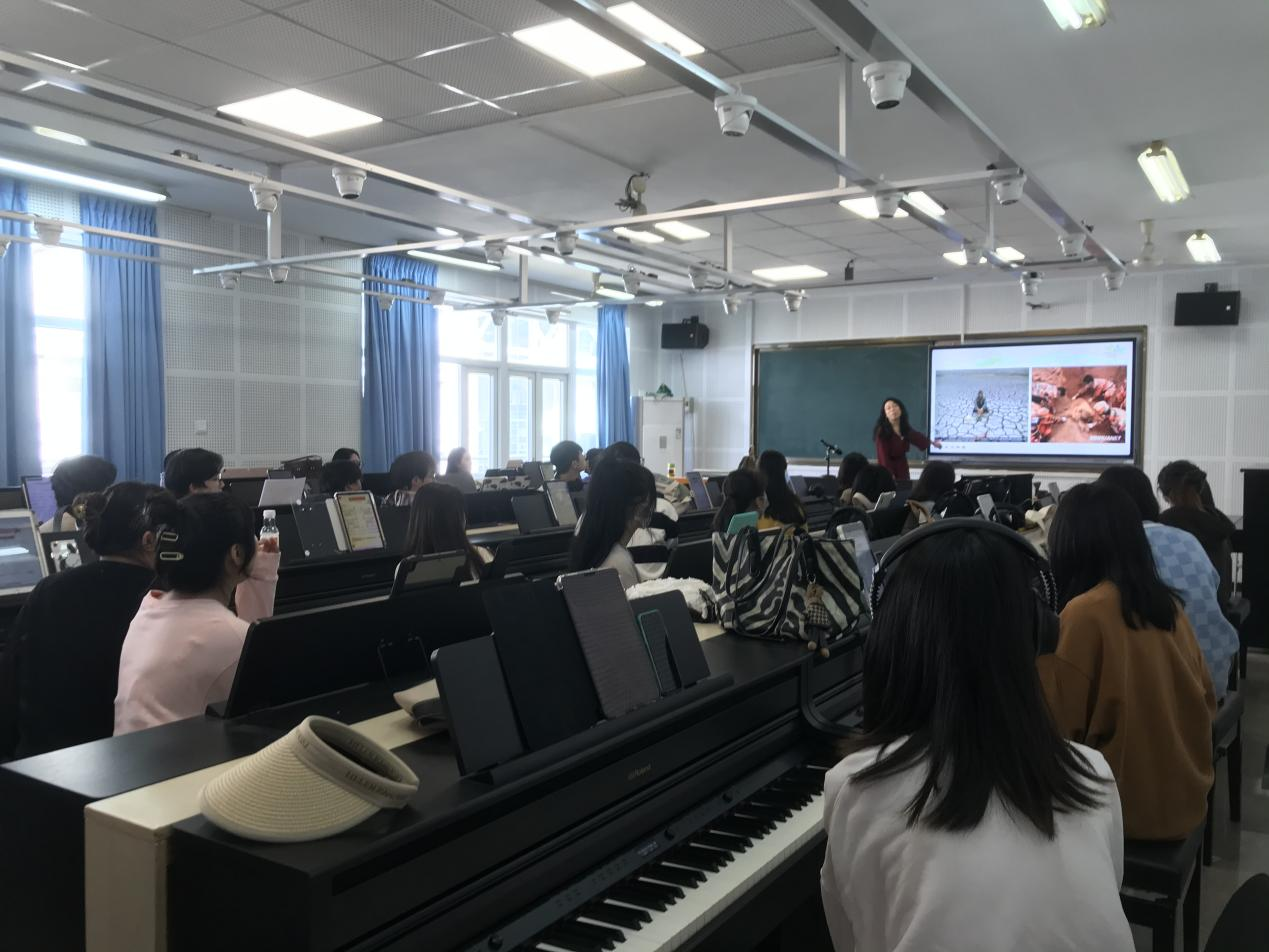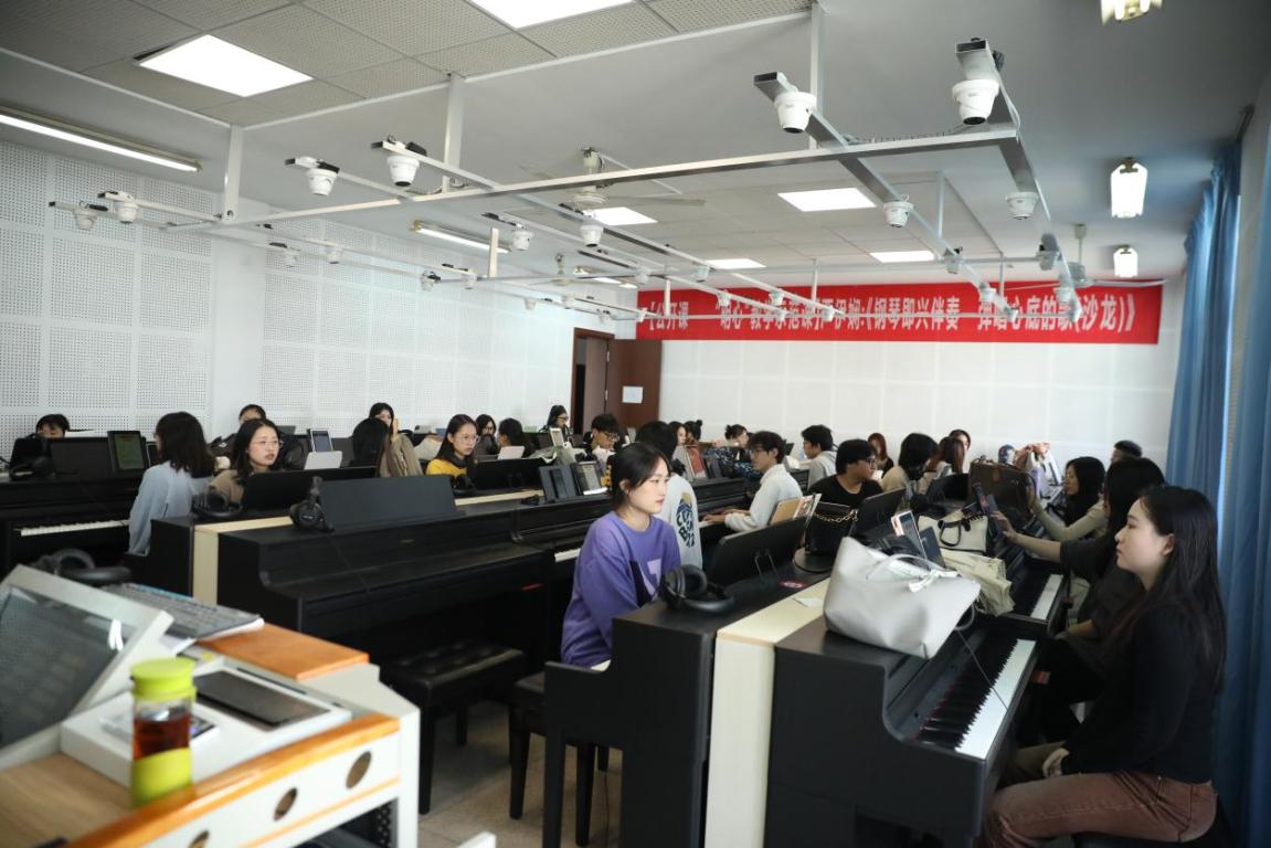2022年11月18日下午1点半,在北校外语楼502教室严伊娴老师讲授了“明心”教学示范课《钢琴即兴伴奏——弹唱心底的歌(沙龙)》,参加本次公开课的有20音乐学(师范)4班以及钢琴系全体教师。