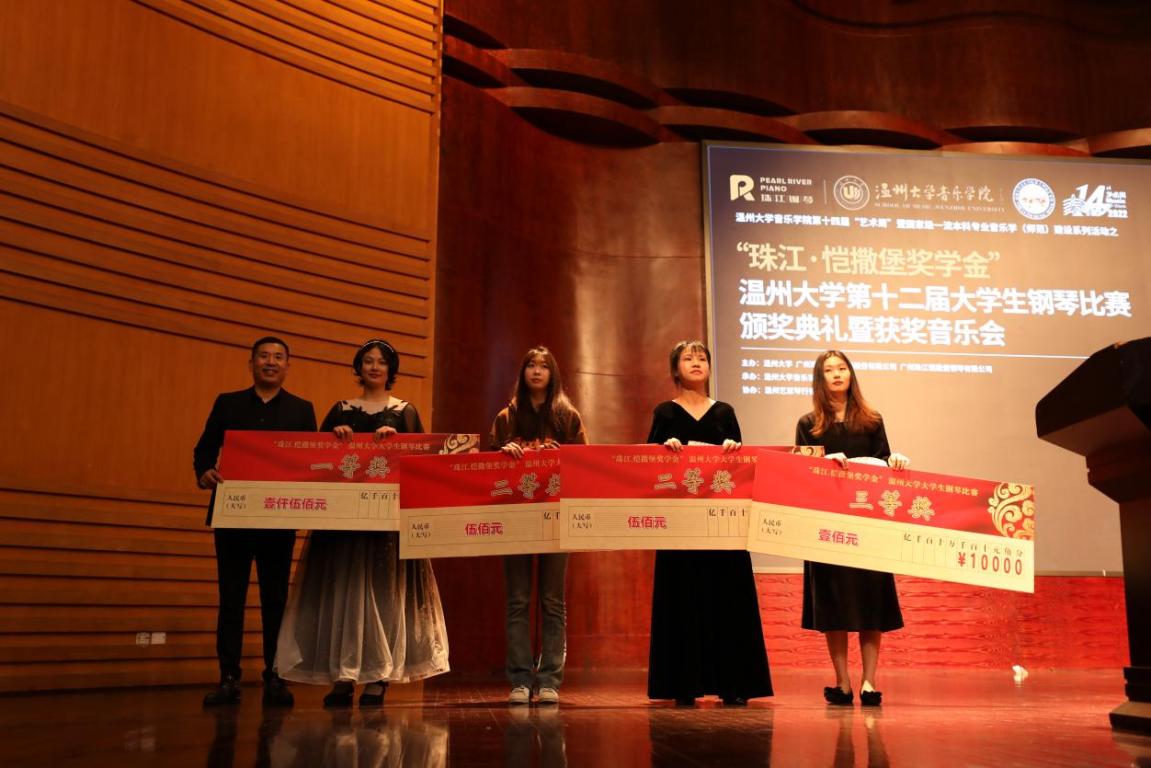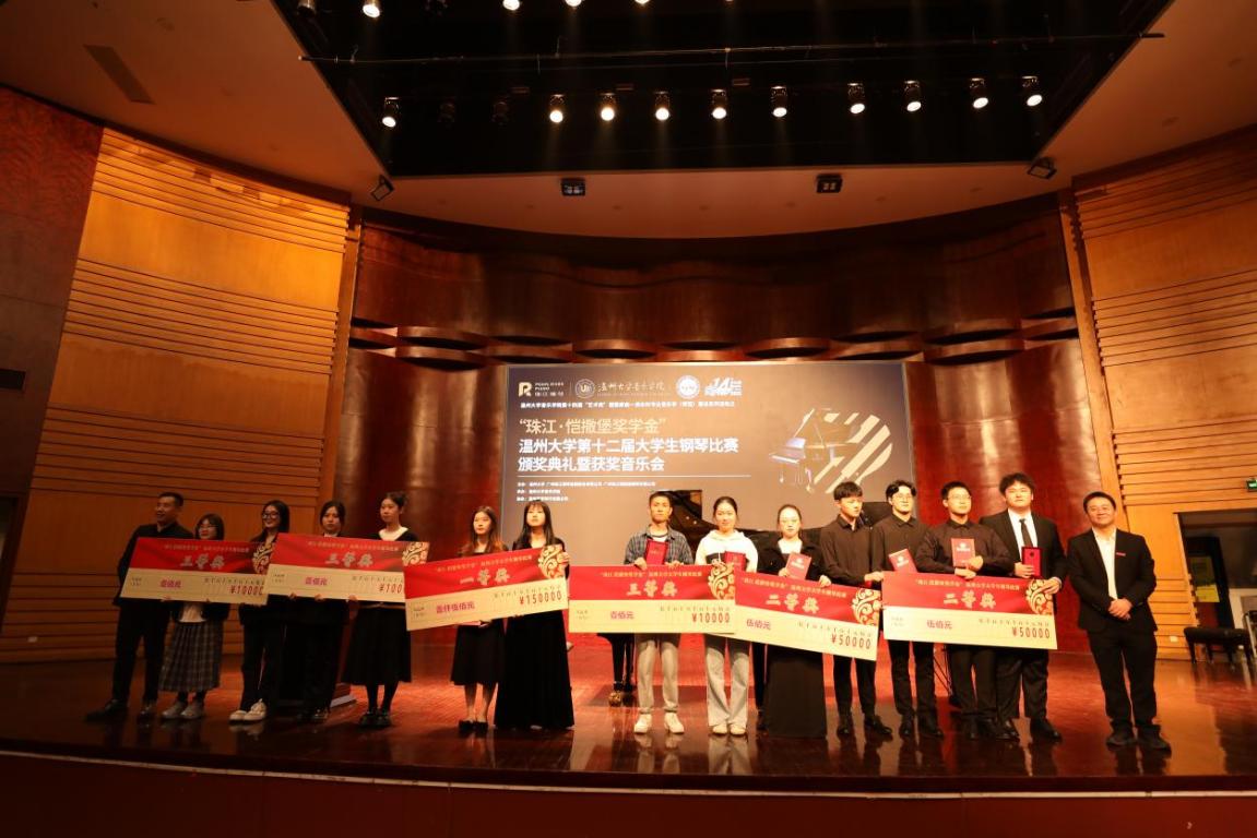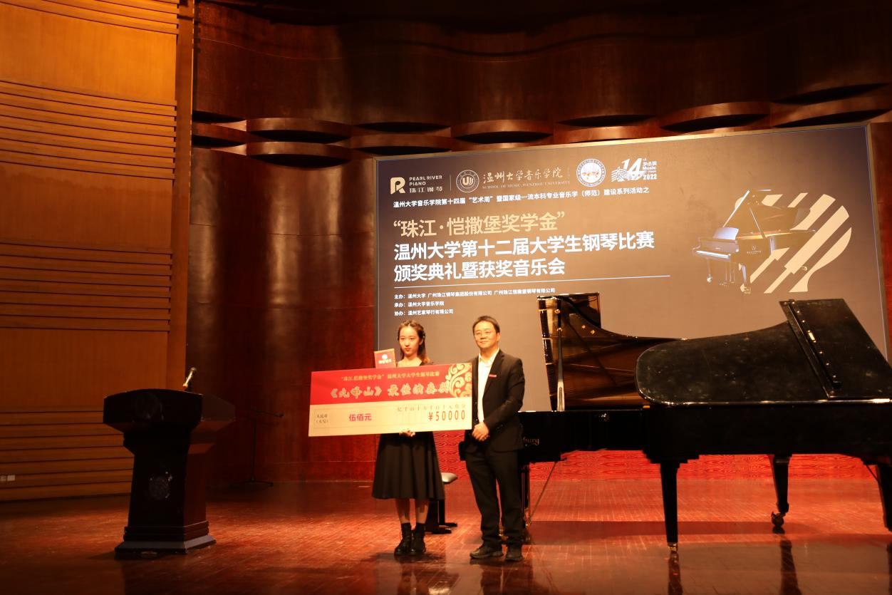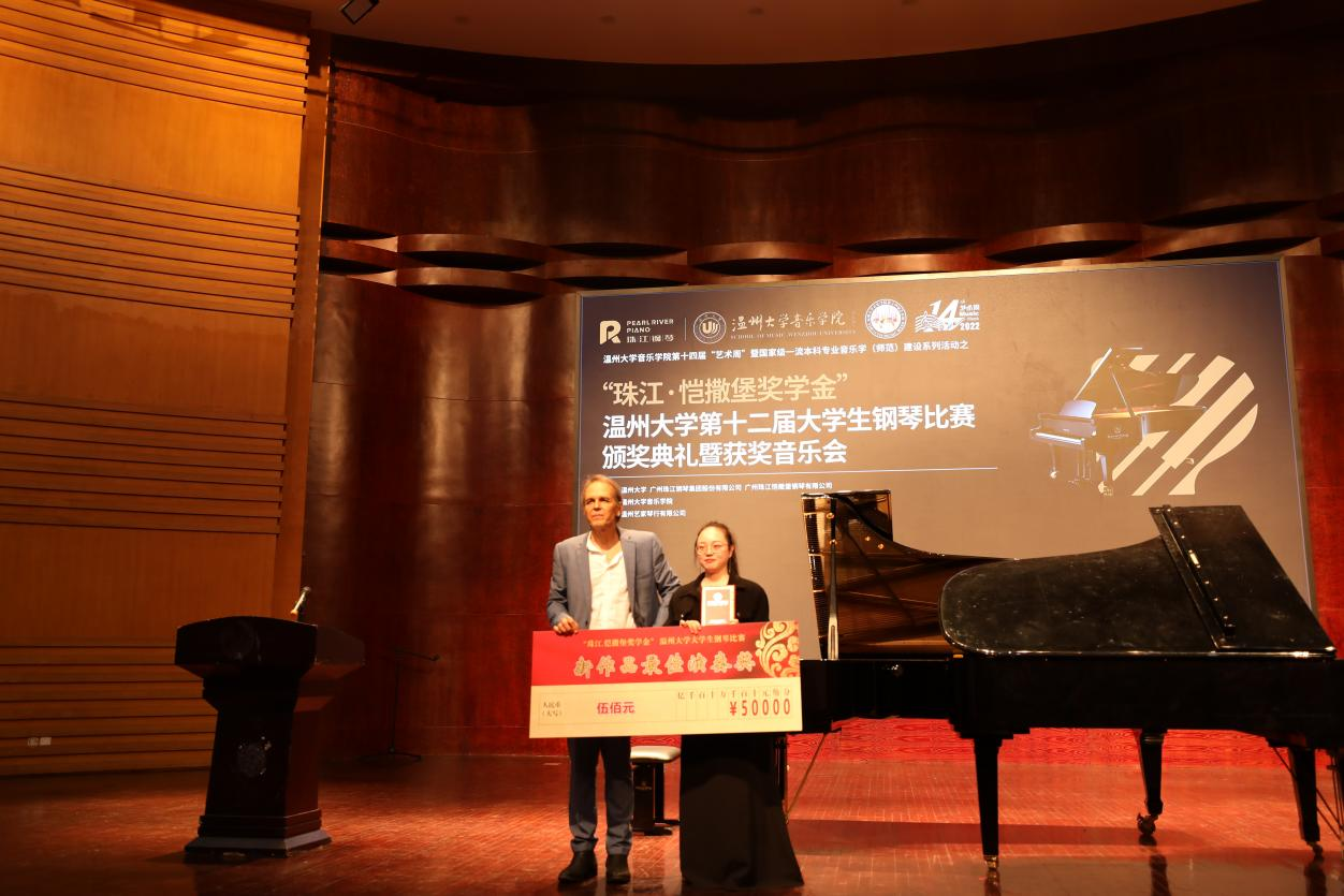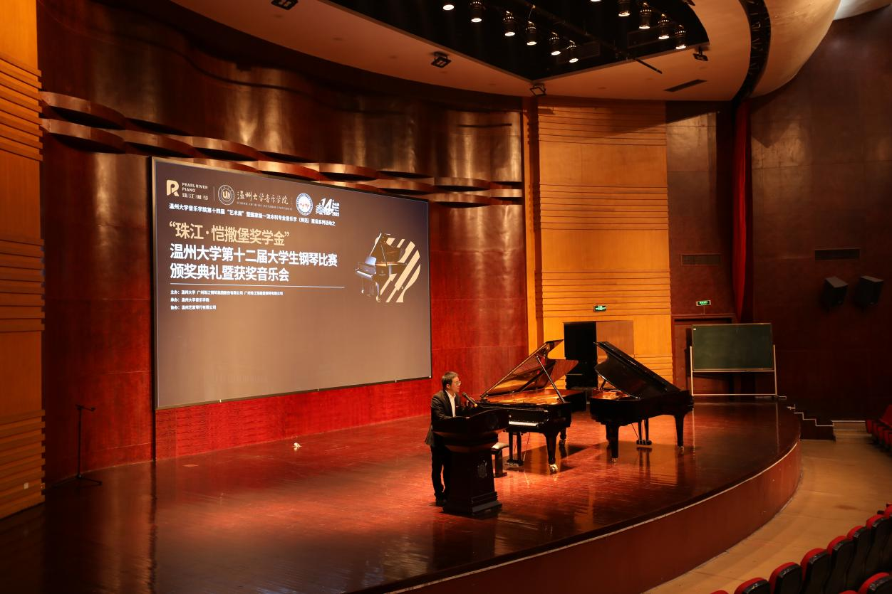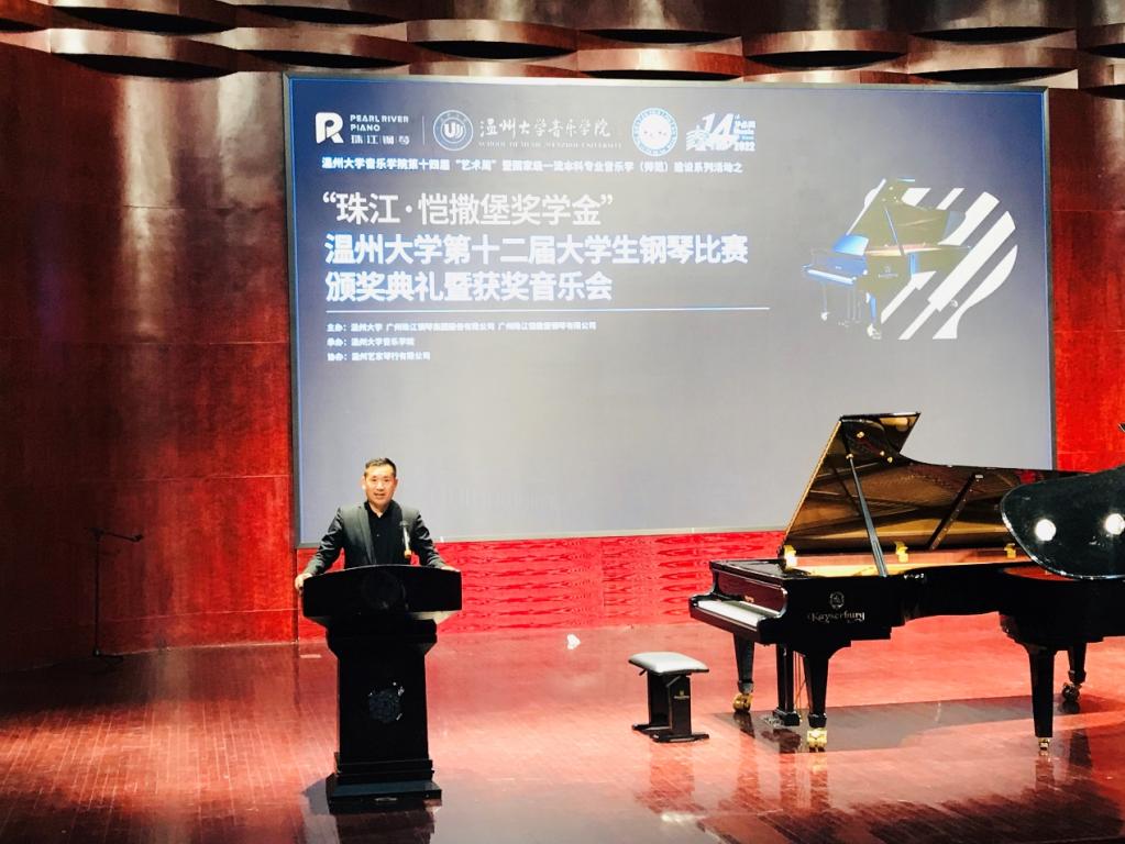 第十二届大学生钢琴比赛颁奖典礼暨获奖选手音乐会在南校音乐厅举行。珠江钢琴集团公司代表、温州艺家琴行有限公司总经理陈辛革先生,以及时时彩