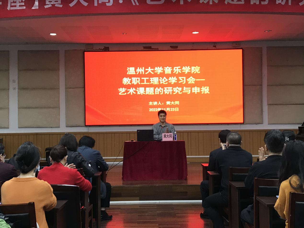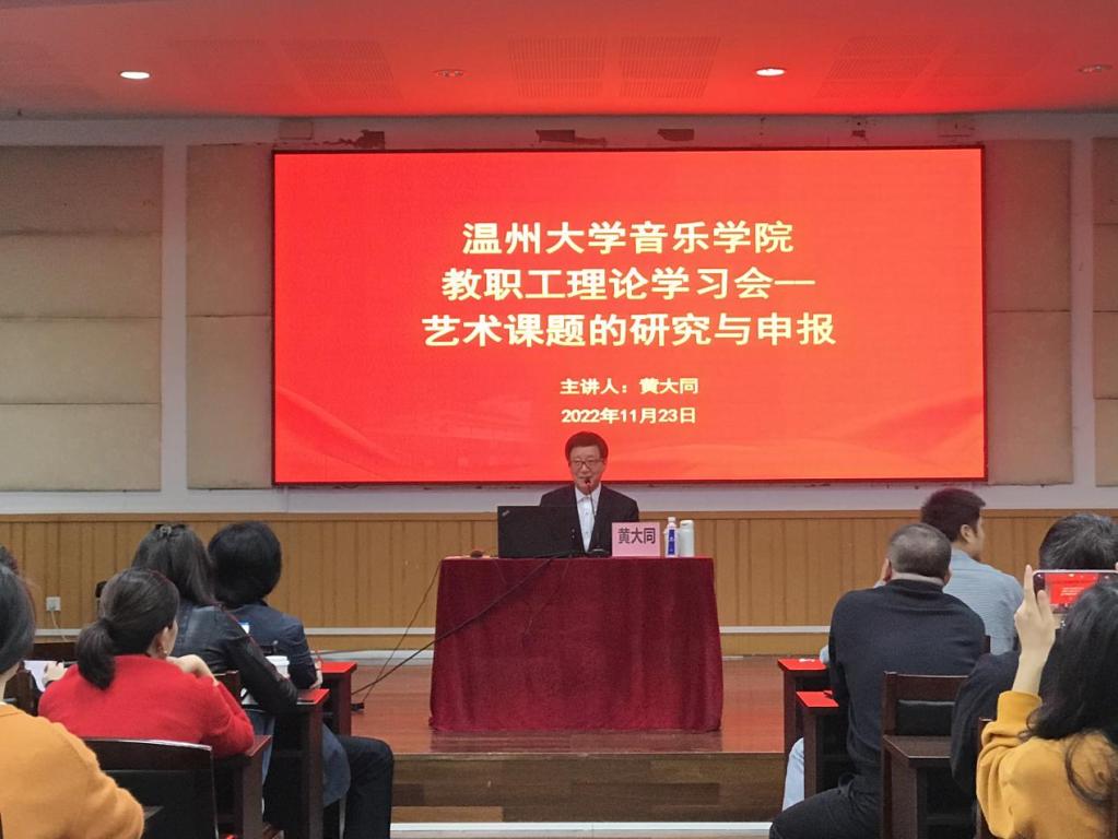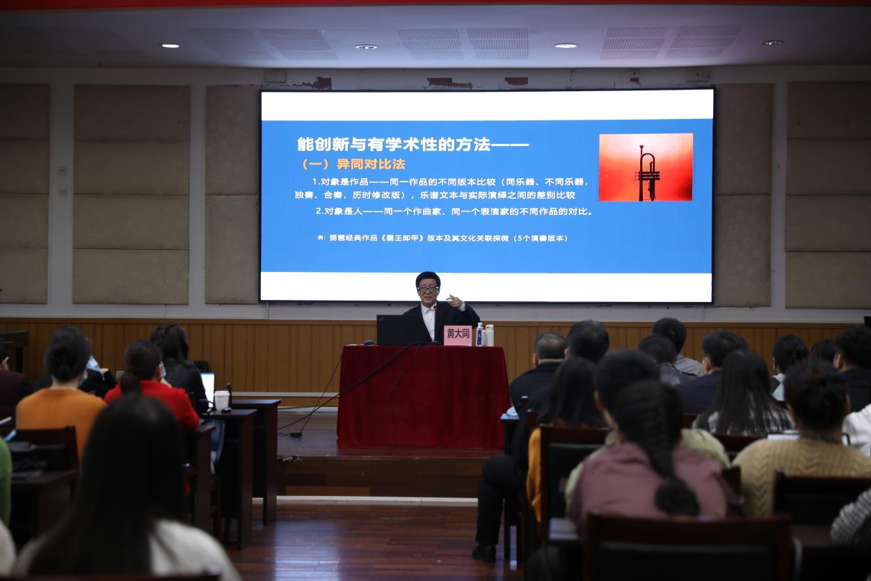 在北校音乐楼201学术报告厅举行了黄大同教授《艺术课题的研究与申报》学术讲座,参与本次讲座的有时时彩