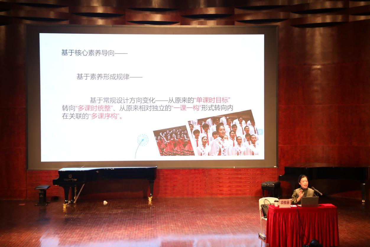 项雅丽老师从学科素养的任务驱动;作品关联的目标重组;向多种维度的统整思维;学业评价的前置设计四个方面开启今天的讲座。