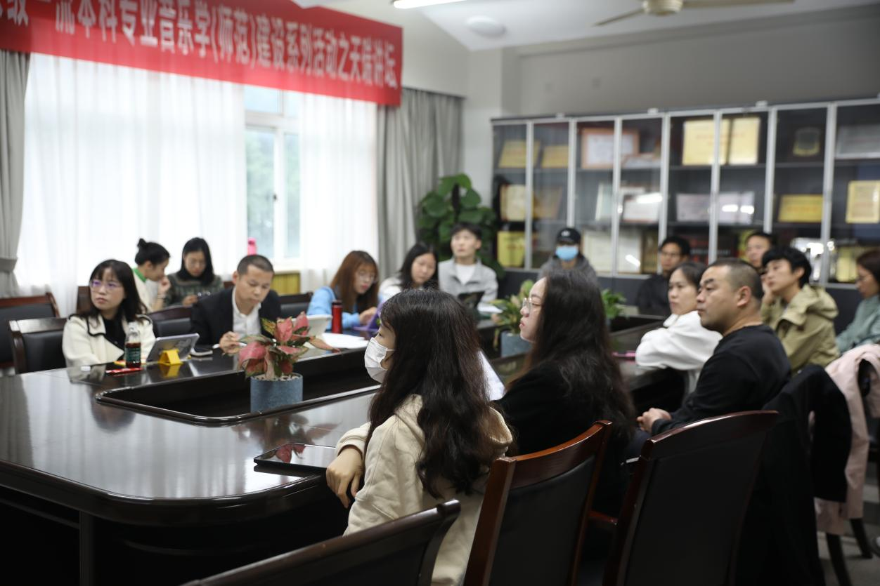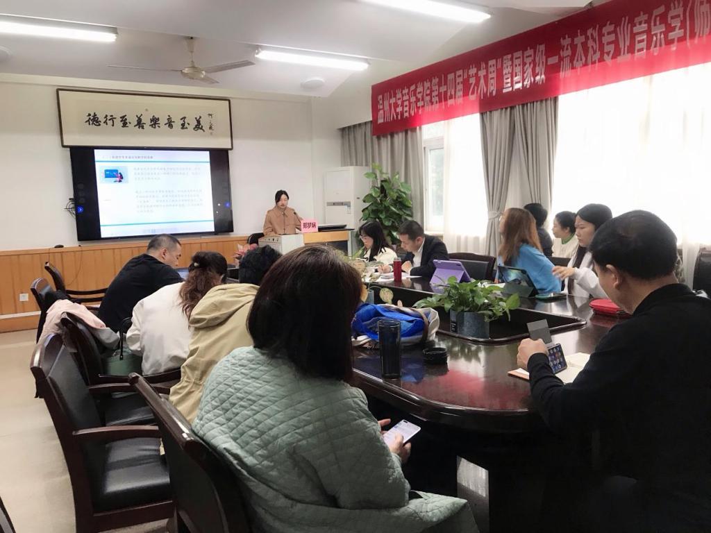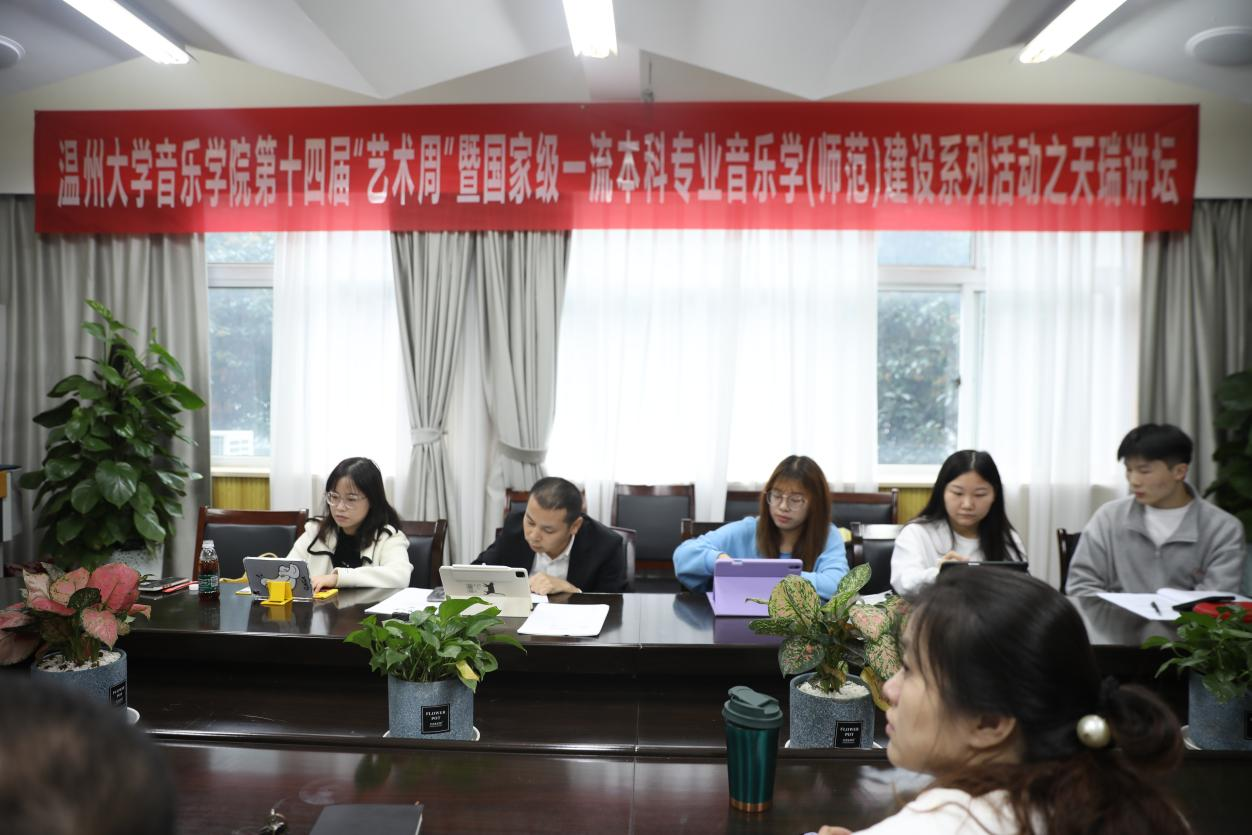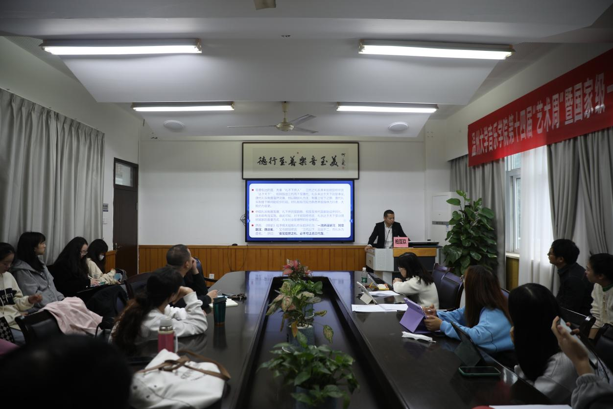 第十四届“艺术周”暨国家级一流本科专业音乐学(师范)建设系列活动之天瑞讲坛活动在北校区音乐楼203教室隆重举行。在此活动上,徐文正教授、王维教授、郑梦娴博士、柏互玖教授四位分别做主题发言,汇报近期研究成果。参加此次活动的有音乐理论系全体老师及部分研究生同学。
