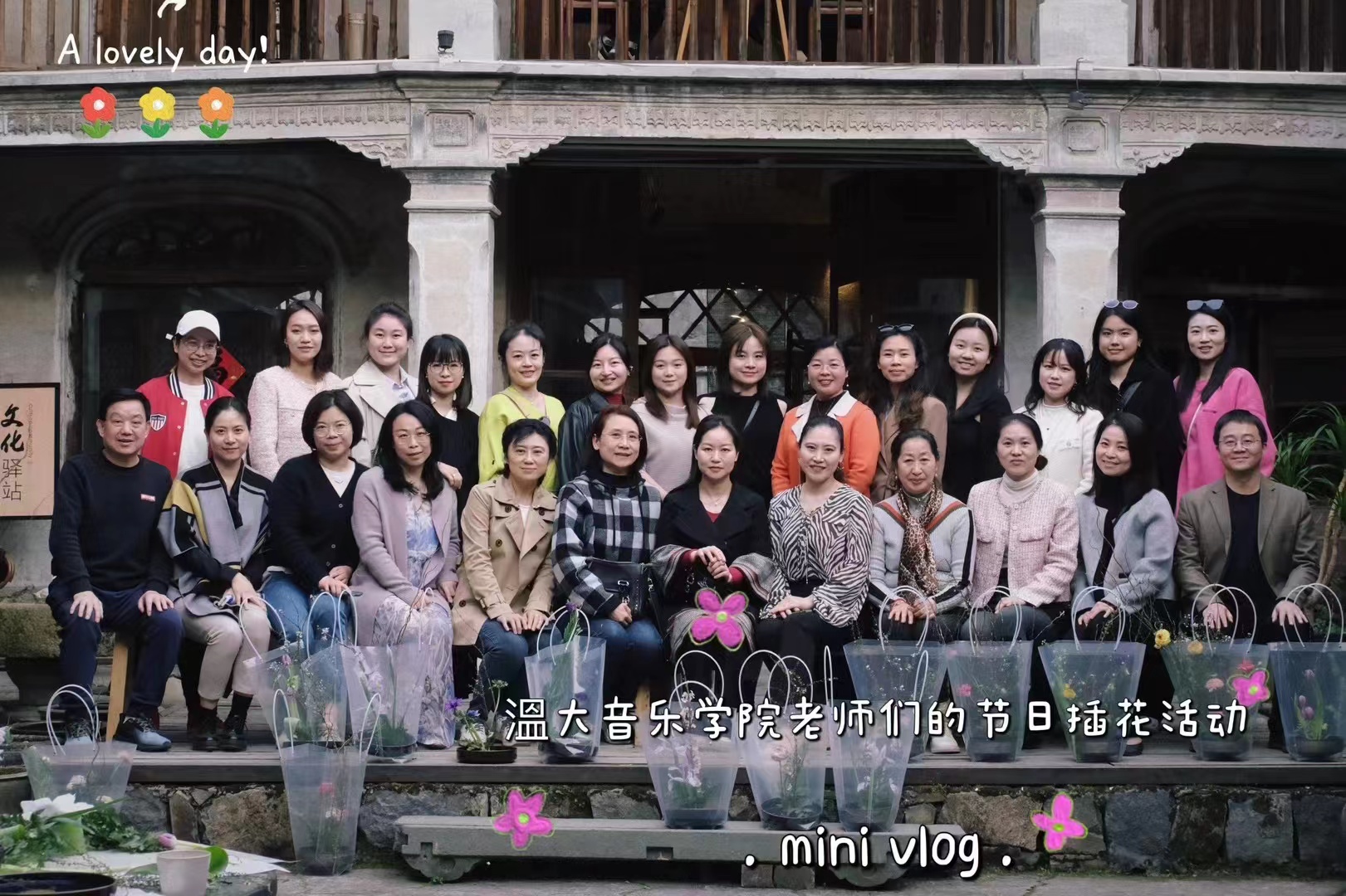 女教工们前往乐清老城区一座已有百年历史的民国建筑---可楼体验花道艺术。首先,专业花道老师给女教工们简要阐述了花道的历史传承以及起源。接着,讲解一些在花枝修剪、色彩搭配、造型层次、花器种类等方面的知识。然后,在花道老师的悉心指导下,老师们纷纷动起手来,按照花枝修剪、层次搭配、色彩点缀等步骤,融入自己对美的独到见解,感受从自己手中绽放的浪漫,在花的芬芳和美妙中尽显自己的诗情画意和审美情趣。