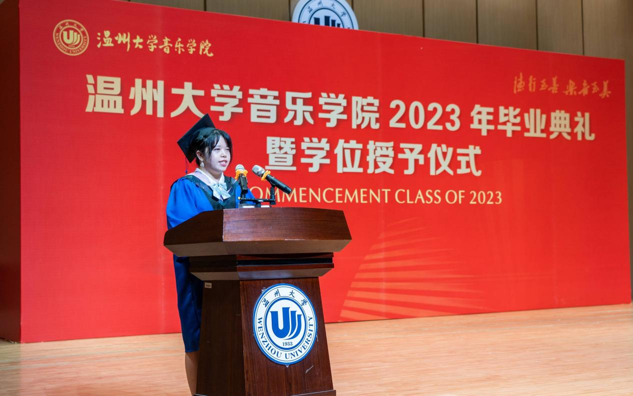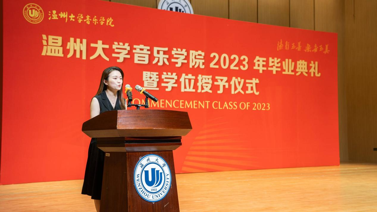 随后教师代表19音教1班班主任陈露雯发言,他希望毕业生能在踏上新的征程之际能记住三点忠告,首先是任何时候请不要忘了热爱自己的专业,其次是任何时候请不要忘了热爱自己的生活,其三是任何时候请不要忘了热爱我们时时彩