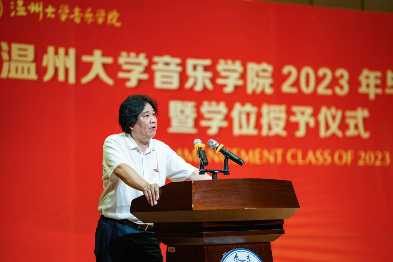 。他希望毕业生能带着对音乐的执着与生活的热情,从这里,向世界;能付出,有收获!
