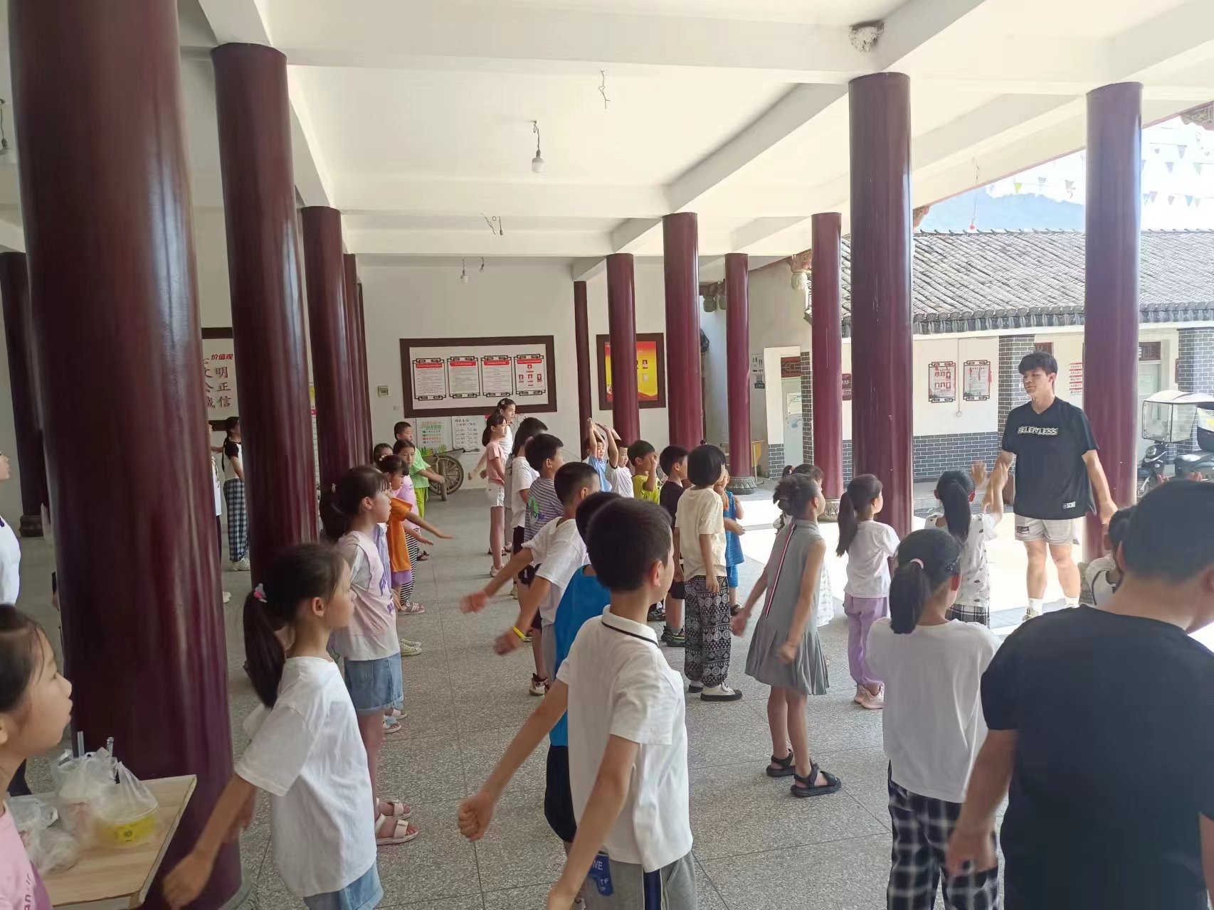 。本次支教活动为期14天,专门面向留守儿童。这些哥哥姐姐为孩子们开设了丰富多样的课程,包括戏曲动画、快乐剪纸、趣味合唱、温州传统文化、欢乐操、作业辅导等,意在提升孩子们的艺术素养和动手能力,增强对家乡的文化认同。