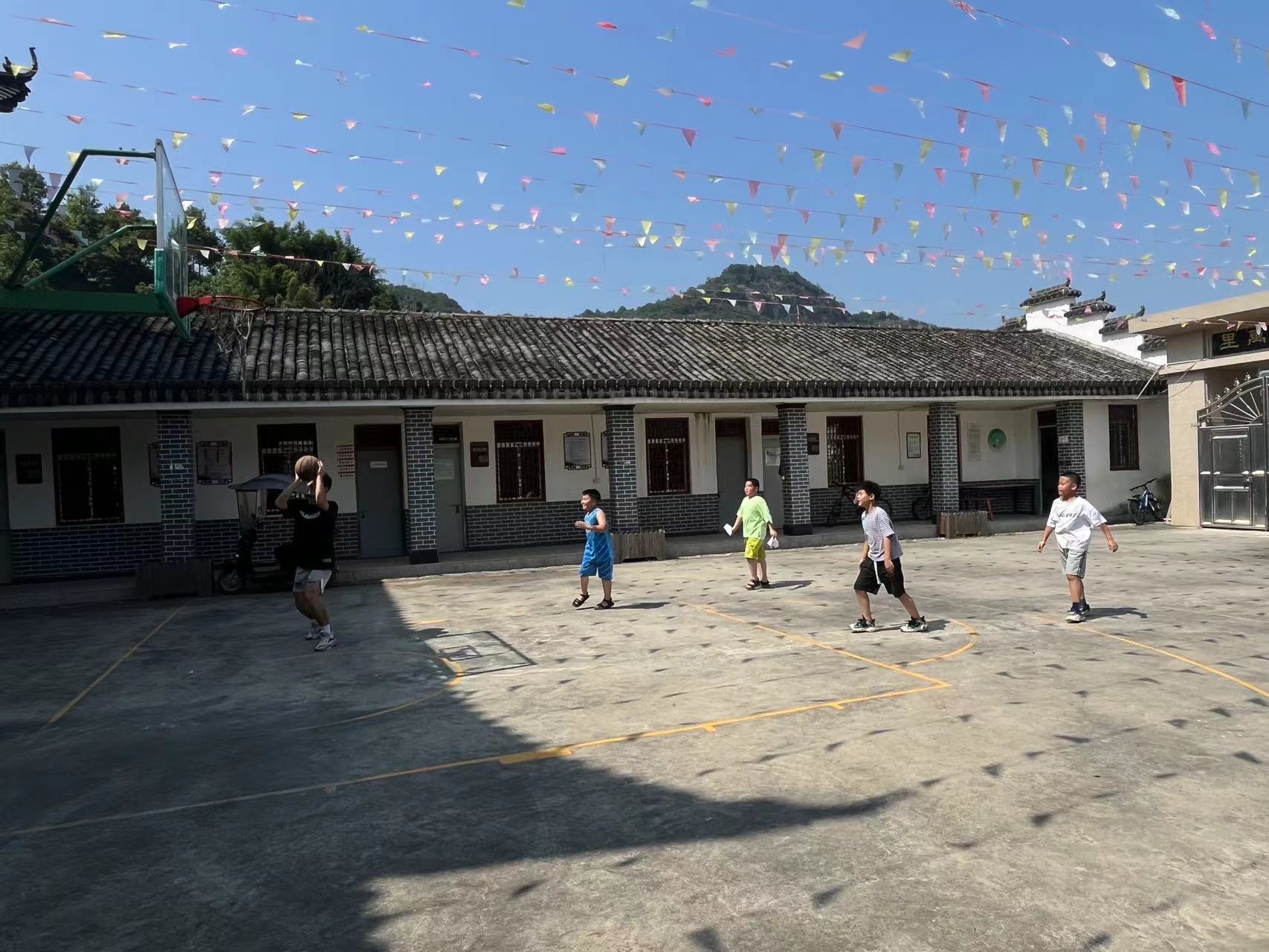 小朋友们和支教老师一起打篮球