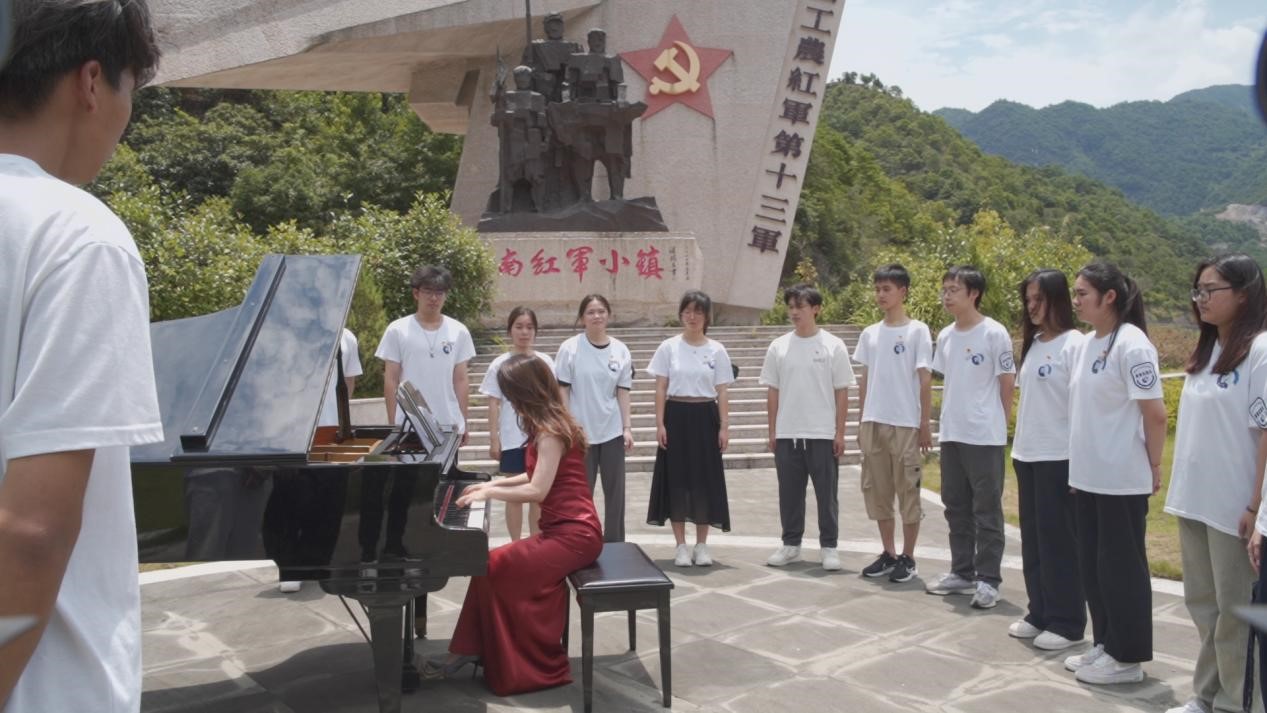 “红星闪闪放光彩,红星灿灿暖胸怀……”。在永嘉县岩头镇红十三军纪念馆前,一群来自时时彩