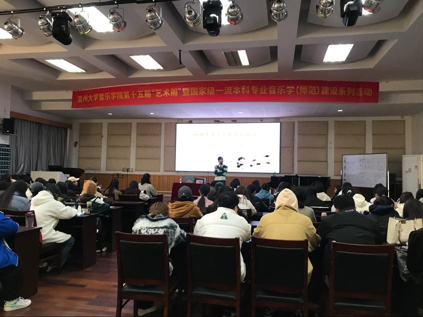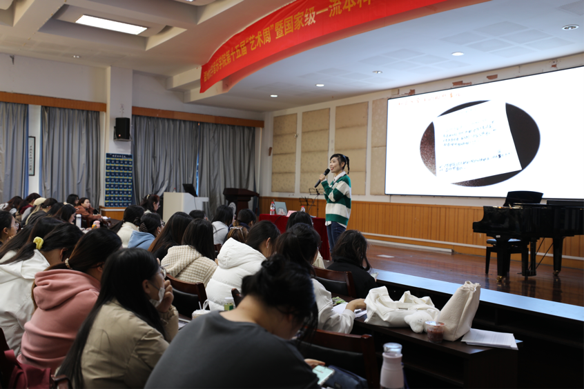 为了使学生更加明确职业发展目标,让同学们在艺术周活动中能够更好地丰富自我,2023年11月27日上午,由温州市第二实验中学教学副校长陈珊景老师主讲的“聊聊未来音乐老师新模样”讲座在音乐楼201举行,此次讲座面向21音乐学(师范)全体大三学生。