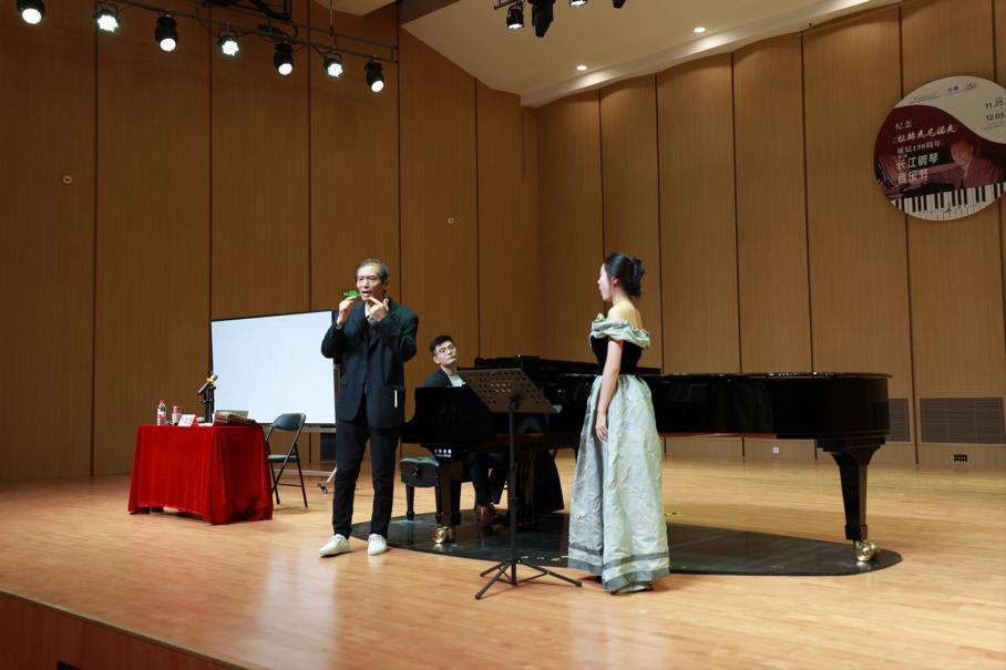 在长达一个半小时的授课中刘老师始终保持精神饱满,思维敏捷。针对学生歌唱过程中出现的问题逐字逐句给予悉心教导与鼓励,反复示范,结合自身经历将故事娓娓道来;以直观形象的思维方式、生动幽默的语言与娴熟精湛的示范演唱巧妙地启发了各位同学,其引人入胜、极富感染力的讲解也让现场的师生受益匪浅,学生们展现极高的热情。现场为刘老师精彩的讲解以及台上学员的变化报以热烈掌声。