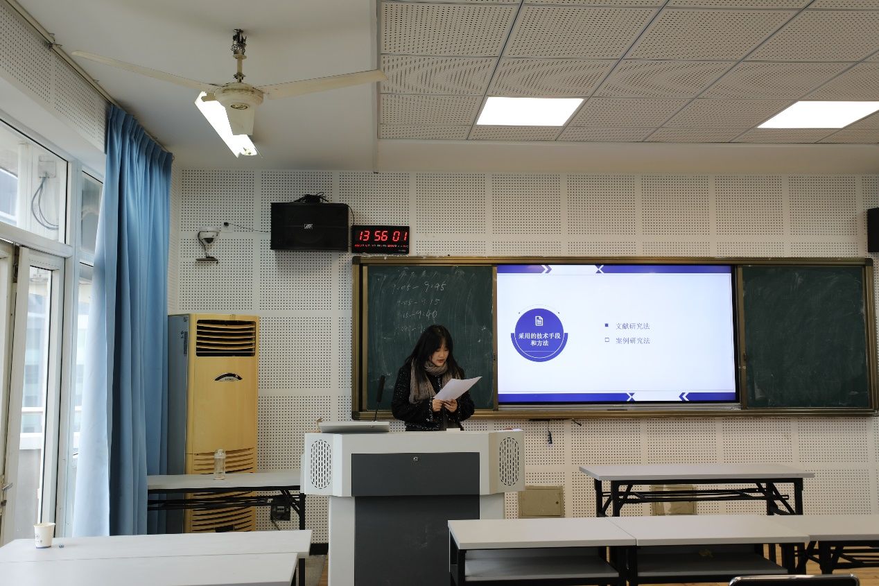 在本次开题报告会中,学生陈述开题报告的内容主要包括以下四个方面:论文选题的意义,在撰写过程中解决的主要问题,运用到的技术手段和方法,总体的进度和安排。评委老师们针对每位同学的开题报告从四个维度提出问题并给出了修改建议。