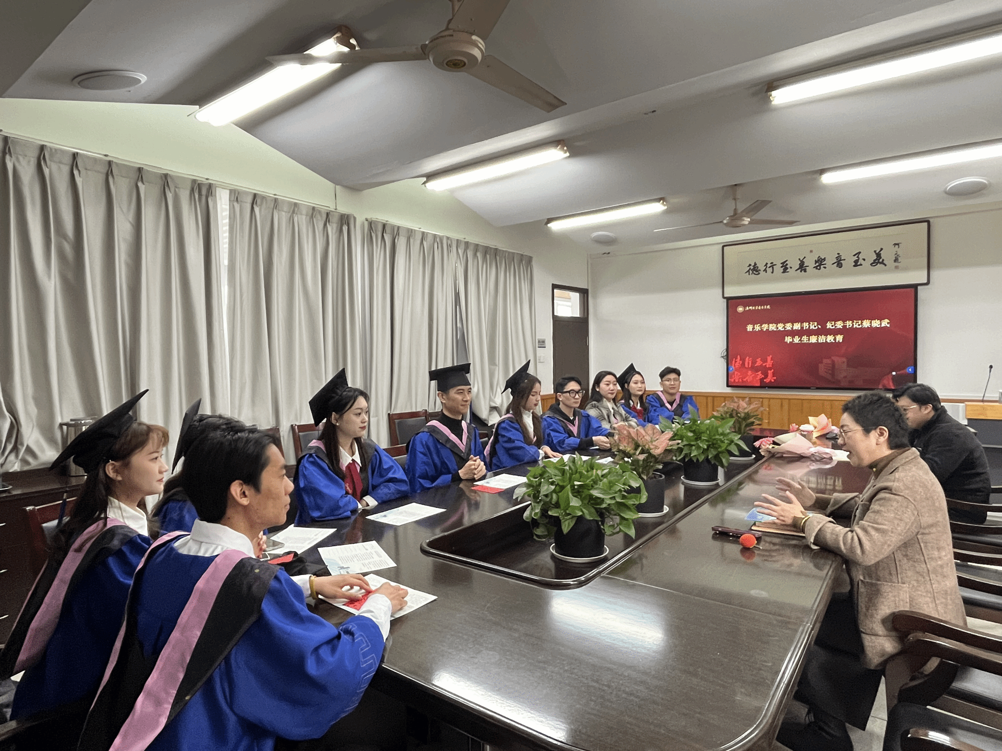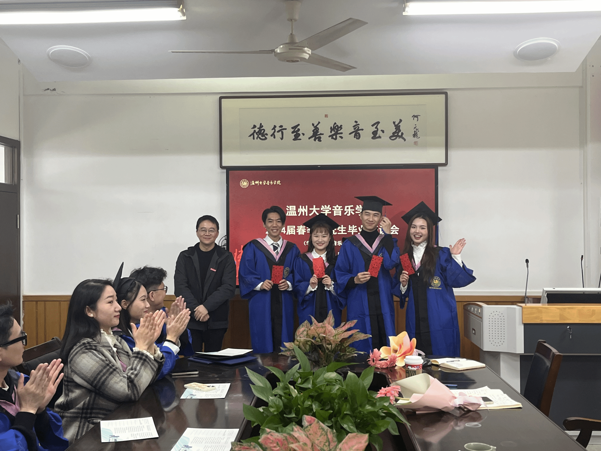 给毕业生送上了祝福,希望他们在未来的道路中能始终谨记“求学问是 敢为人先”的校训精神和“德行至善 樂音至美”的院训,始终牢记自己教书育人的责任和使命,抱有对学生的深深关怀,不断完善教育教学体系,提高教学质量,培养更多优秀的人才。道不尽的话语,说不完的祝福,希望他们在前进的道路上一帆风顺、前程似锦,常回来看看,共同见证时时彩