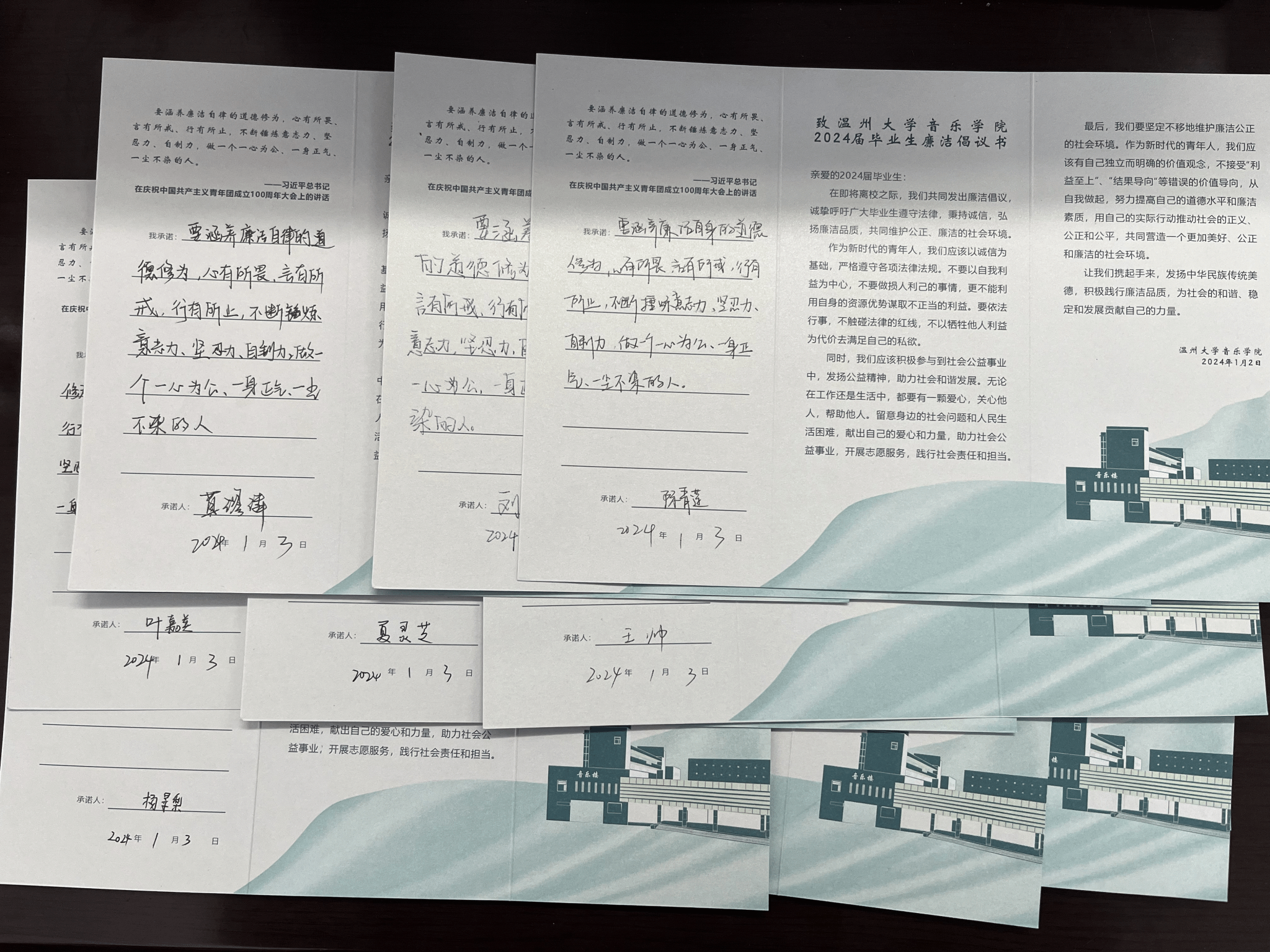 2024届毕业生廉洁倡议书上做出自己的承诺。