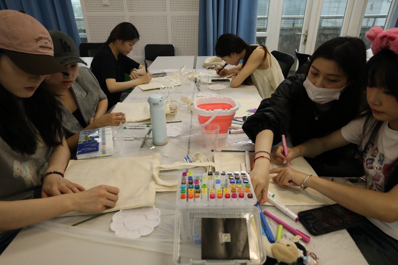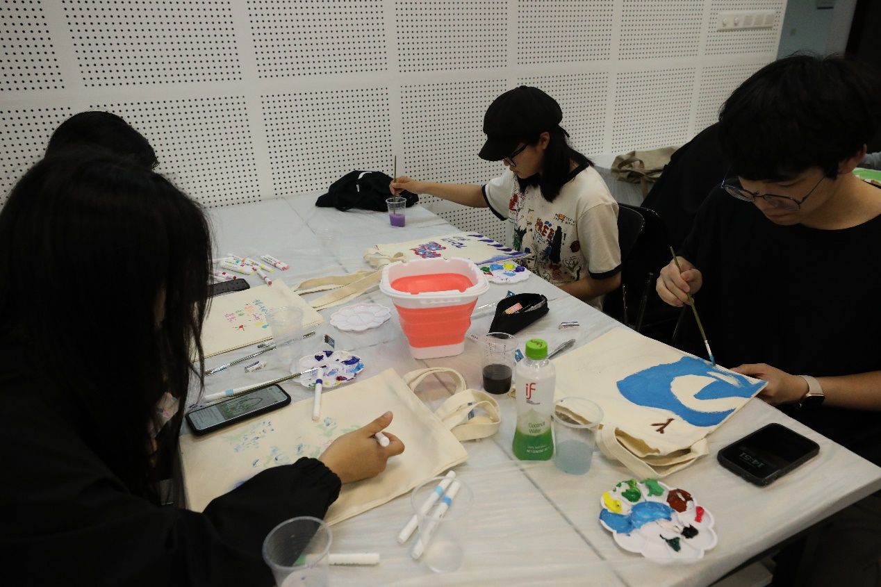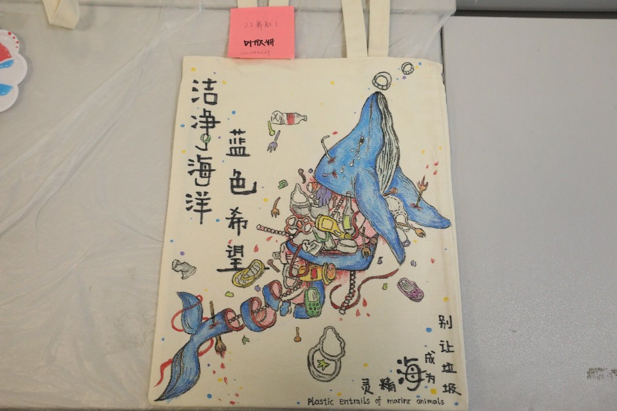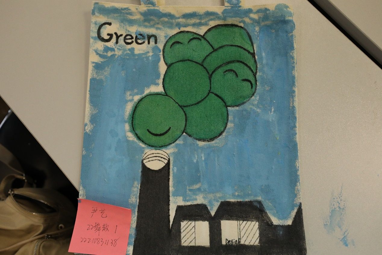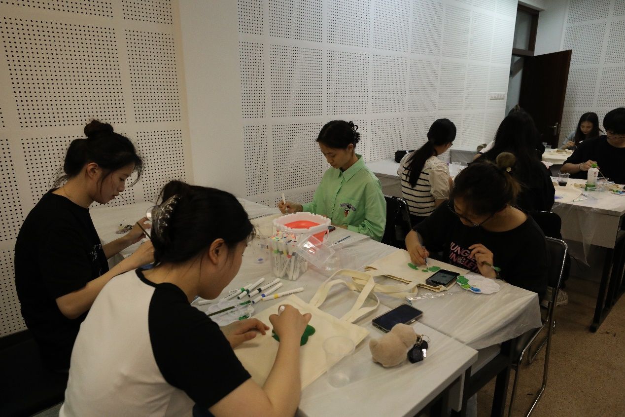 活动开始,大家自由拟定主题,并开始环保袋的创作。活动中有很多作品都富于创新,经过巧妙地构思,大家笔下的线条慢慢地变成了图形,原本单调的帆布环保袋也有了色彩,映现出一幅幅精美的画作,以全新的视角展现给大家.