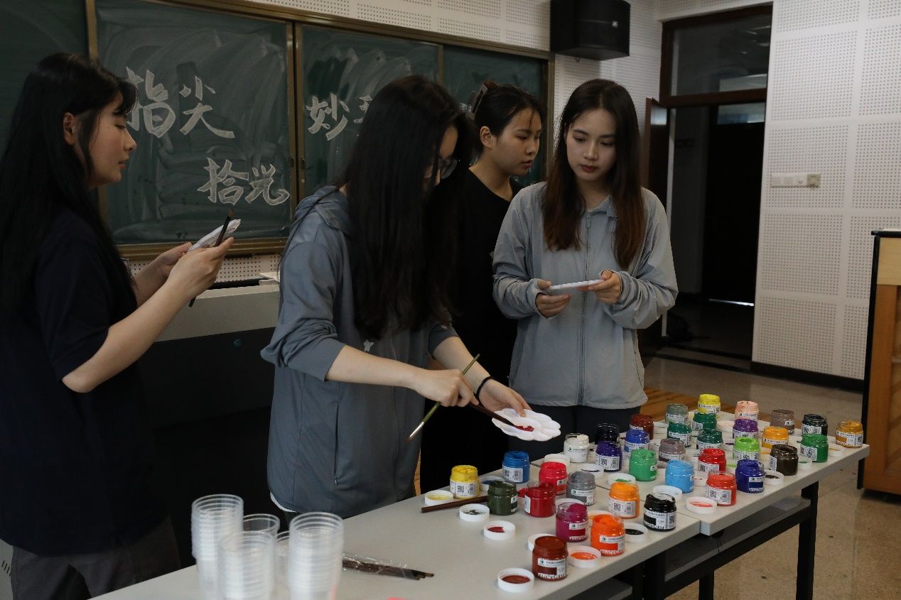 在活动开始之前,由心资部的成员准备好制作环保袋所需的材料,并对大家进行必要的材料讲解和指导。同学们再根据自己的喜好和创意,利用提供的材料进行环保袋的制作。