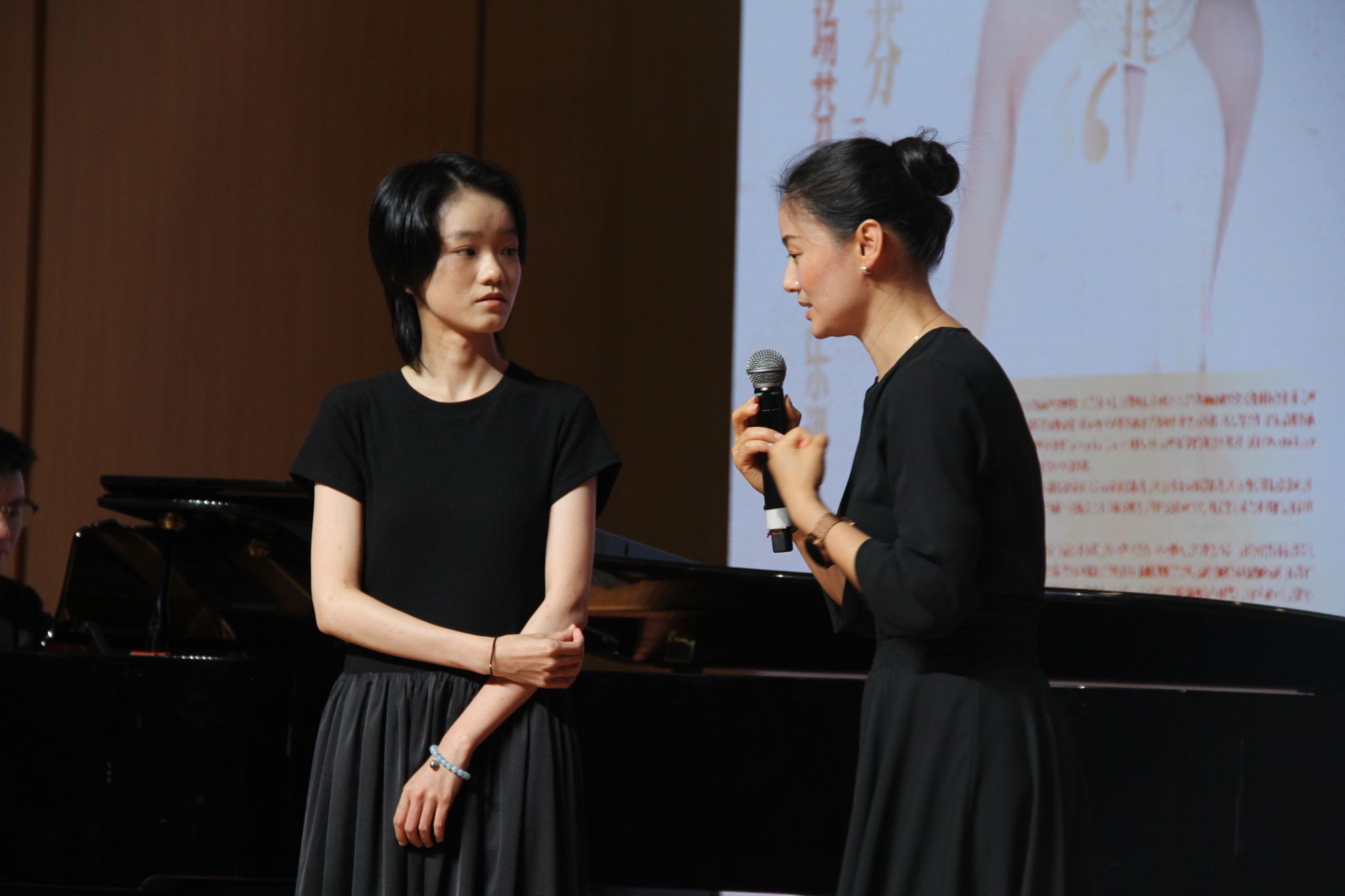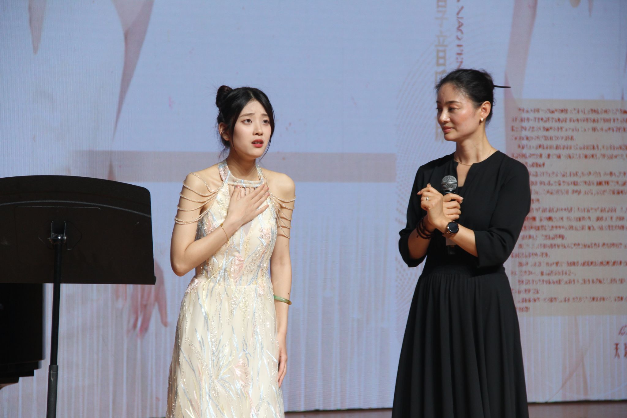 天瑞音乐厅座无虚席,在主持人的隆重介绍下,活动的序幕缓缓拉开,潘小芬老师以从容的步伐款款登上舞台,她的身影在灯光下显得尤为优雅。潘老师深情地分享了自己的音乐之路,每一条足迹都镌刻着坚韧与执着。她娓娓道来在音乐道路上的经历与收获,那些挑战与成就交织的故事,让在场的每一位听众都为之动容。她以真挚的话语鼓励年轻人要勇敢追逐自己的梦想,不畏艰难,不断挑战自我,用音乐的力量点亮人生的色彩,让生活因音乐而更加绚烂多彩。