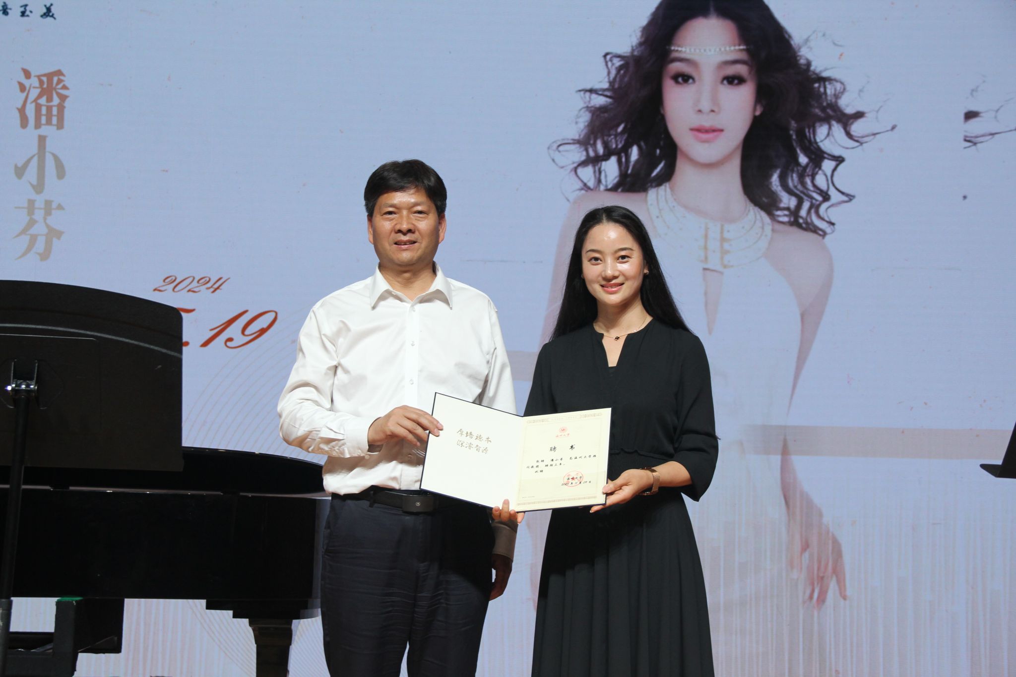 党委副书记庄兴忠为潘小芬老师颁发了顾问教授聘书。