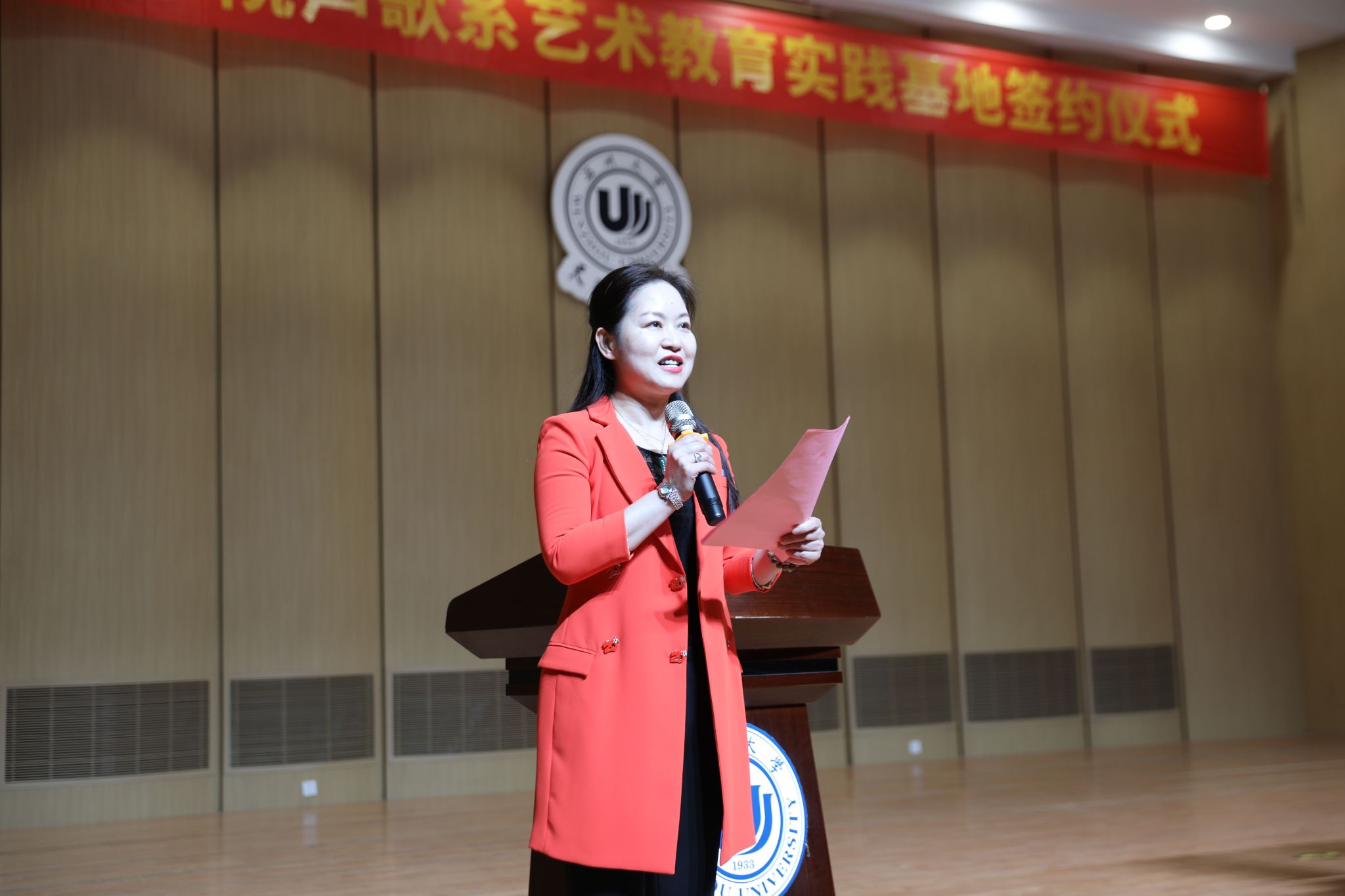声乐歌剧系副主任黄萱女士上台发表讲话。她言辞恳切地表达了对时时彩