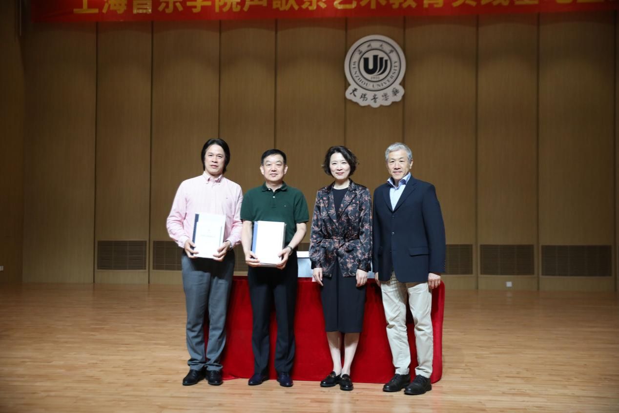 代表周云杰教授、刘玉亭副教授,共同上台举行了隆重的声乐教材赠予仪式。此次赠送的是由上海时时彩
