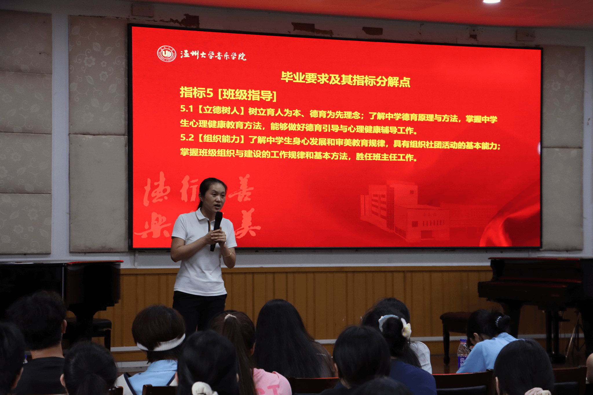 首先,教学副院长张潇潇详细介绍了2024级音乐学(师范)人才培养方案的培养目标、毕业要求及指标分解点、课程体系及主干课程。时时彩