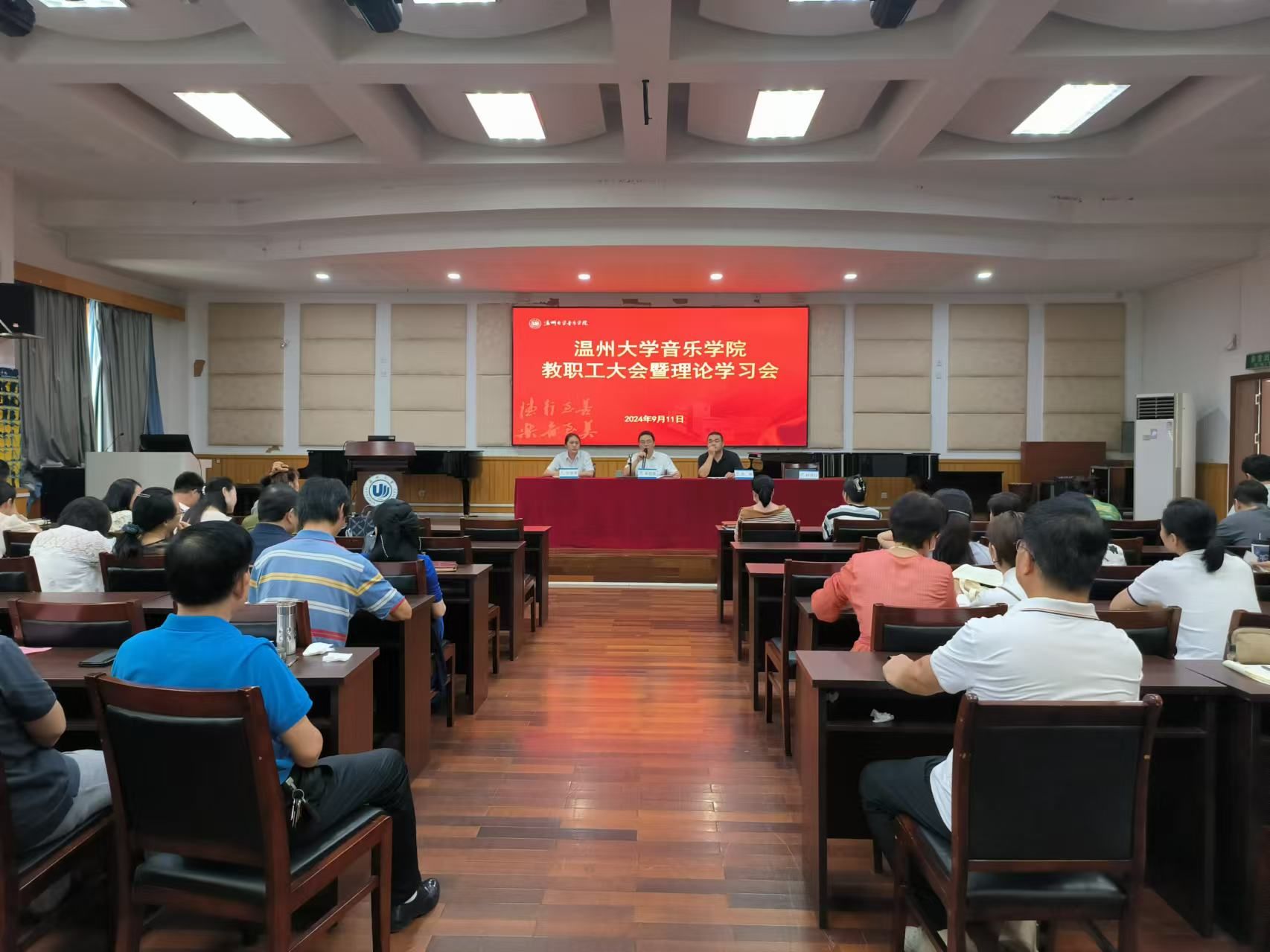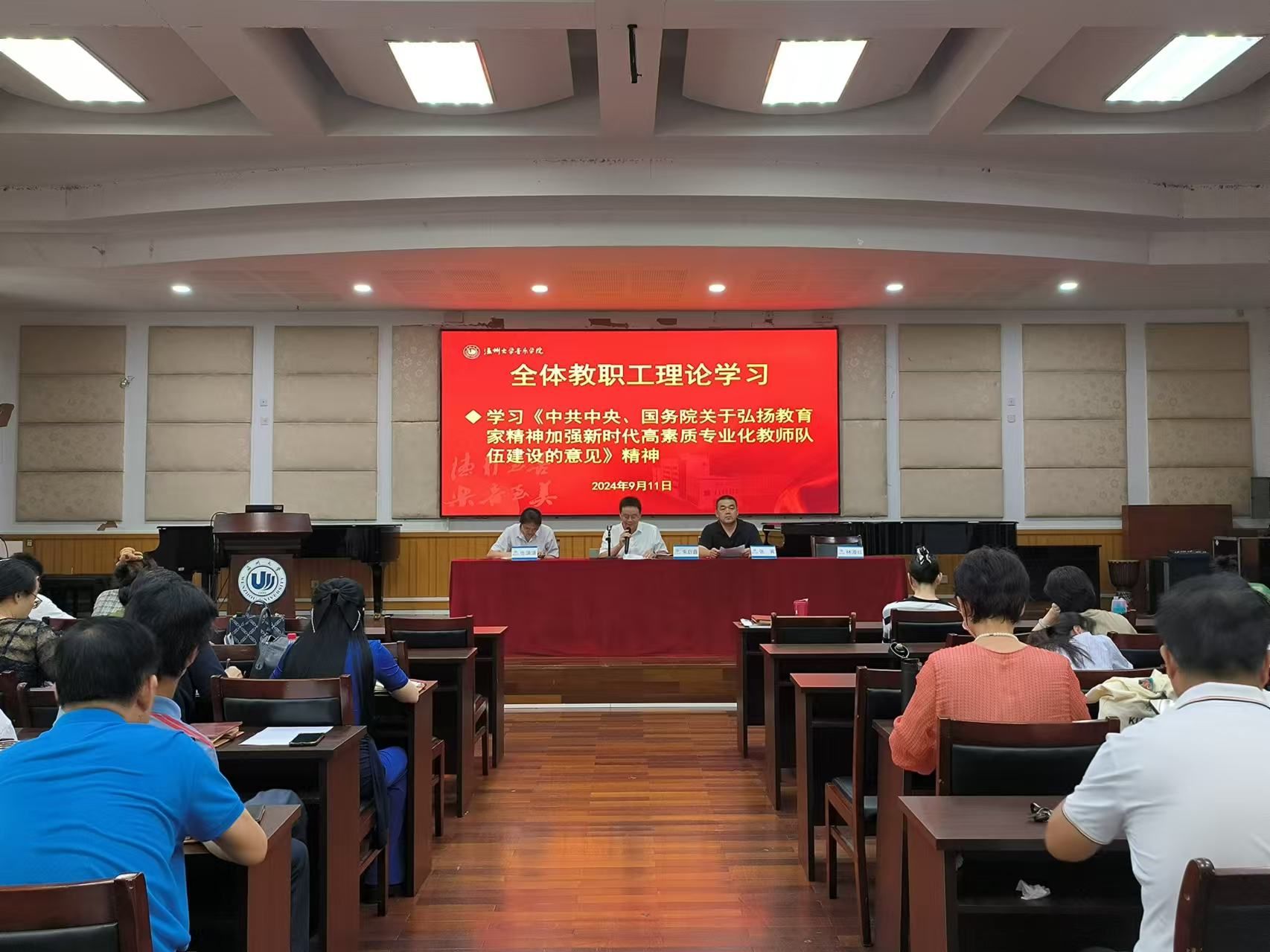 新学期全院教职工大会暨理论学习会在音乐楼201会议室召开,本次会议由院党委书记朱启鑫主持,时时彩