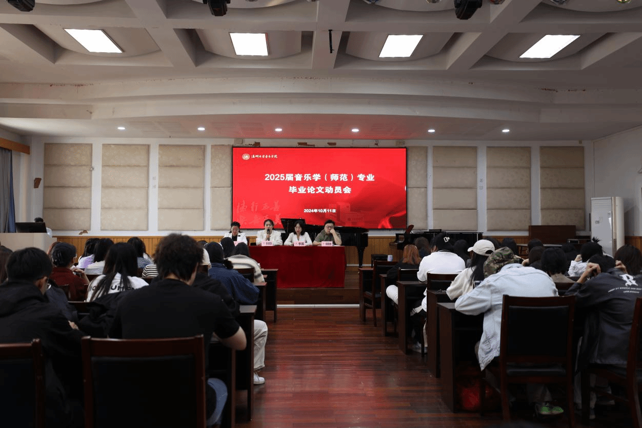 于2024年10月11日上午在音乐楼201学术报告厅举行了动员大会。教学副院长张潇潇、教学科科长成晓、全体音乐学(师范)专业毕业班学生参加此次会议。