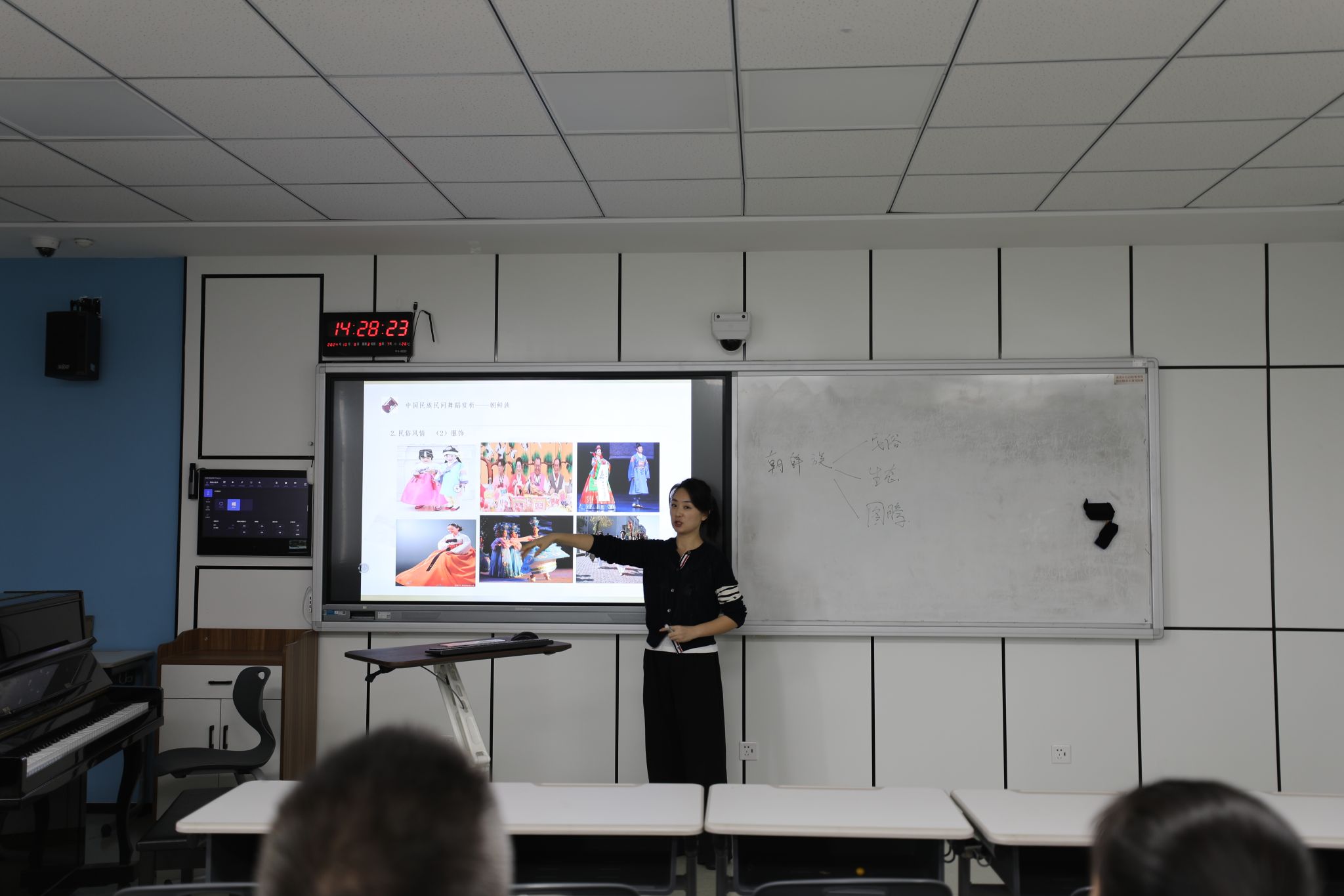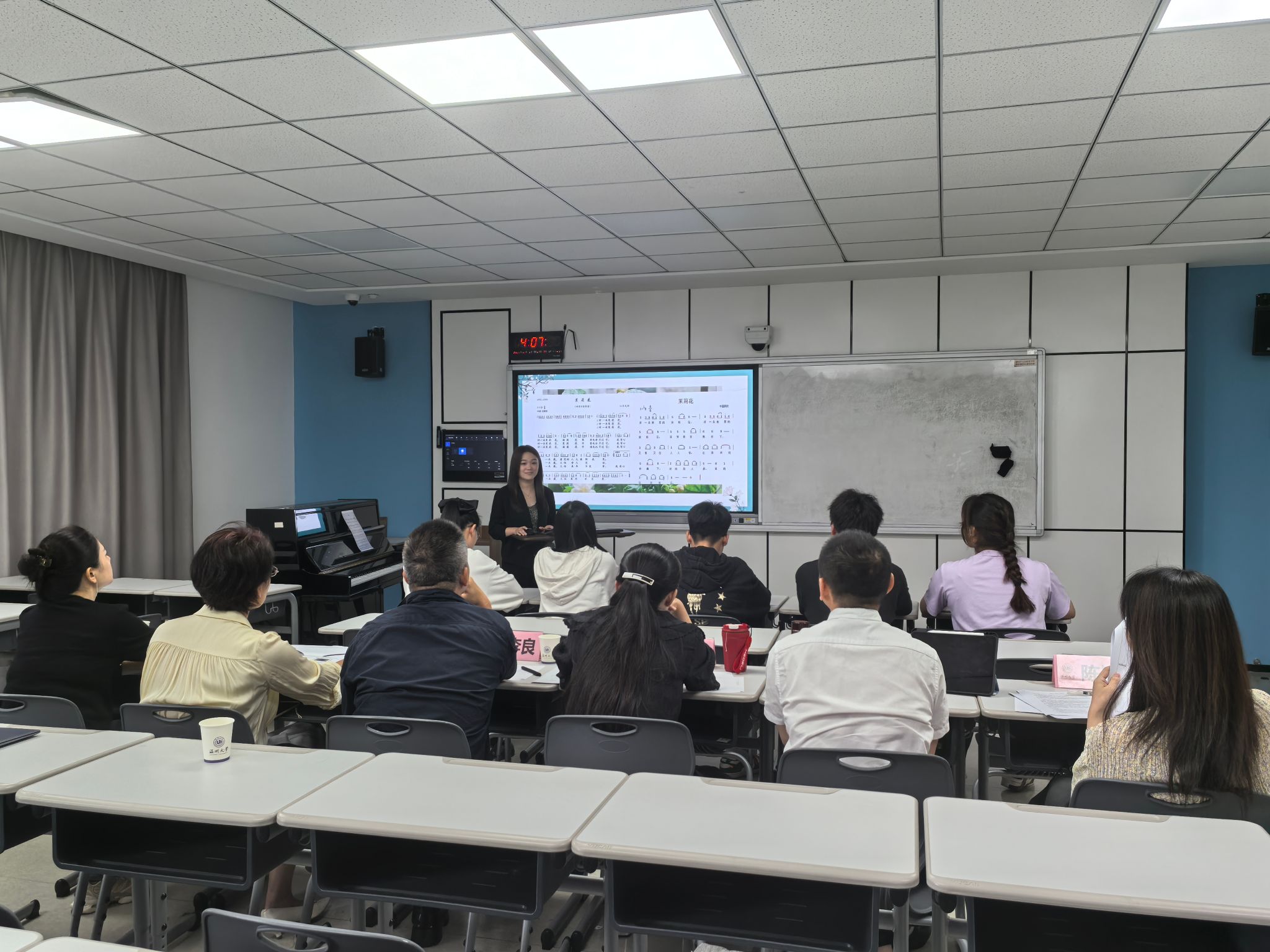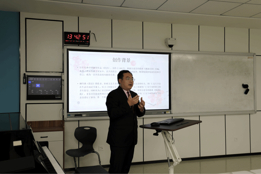 本次教学竞赛采用现场授课的形式,每位教师限时20分钟。周励光老师授课内容为钢琴曲《思恋》,陈露雯老师授课内容为中国民族五声调式—徴调式的编配与弹唱,李恒子老师授课内容为中国民族民间舞蹈赏析—朝鲜族。