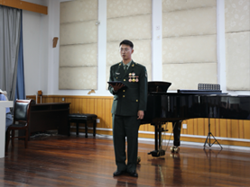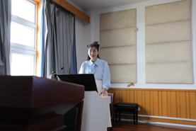 号召,前往艰苦边区服役。在此期间,他收获若干纪念章和集体一等功等,这些经历和荣誉让他更加坚定了自己的职业初心。西部计划志愿者,服务新疆两年的颜廷帅同学,他希望能够返回新疆任教。他从自我认知、职业认知、职业决策、职业路径和自我监控五个方面详细阐述了自己的职业发展规划。最后引用习近平总书记语录,表达自己扎根边疆、奉献边疆的愿望。耿涵静同学梦想成为一名音乐教师。作为一名音乐表演专业的学生,她投身教育事业的愿望,她阐述了自己诸多表演与实习经历,展示了红色革命歌剧《沂蒙山》中的部分台词,打动了在场的评委与观众,充分展现了自身强硬的专业能力和综合素质。