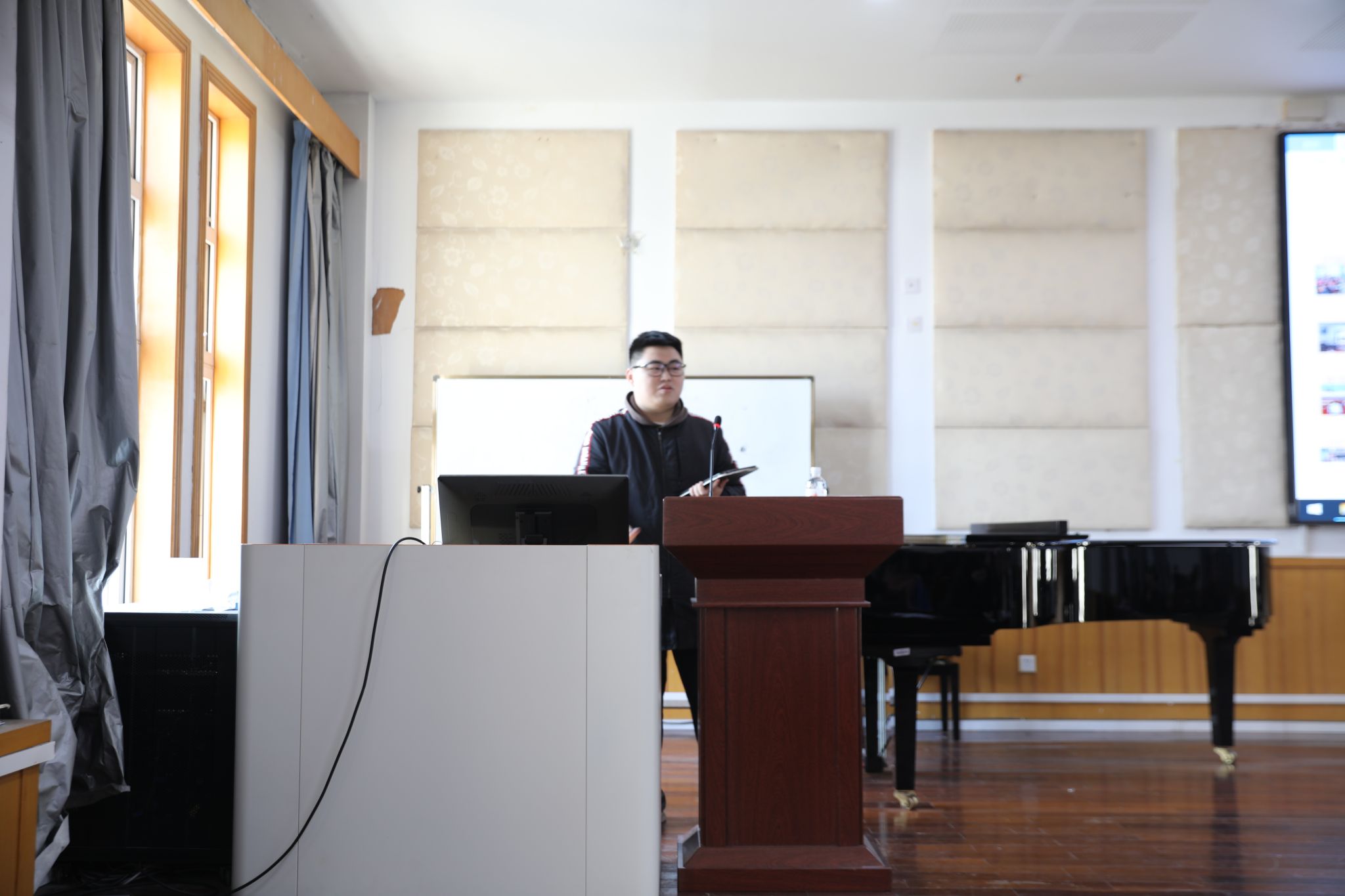 的实习小组派出代表进行实习总结汇报,21音乐学(师范)陈飞同同学代表温州市南浦实验小学、姚逸云同学代表温州市实验小学、李欣业同学代表温州市第八高级中学、彭优嘉同学代表时时彩