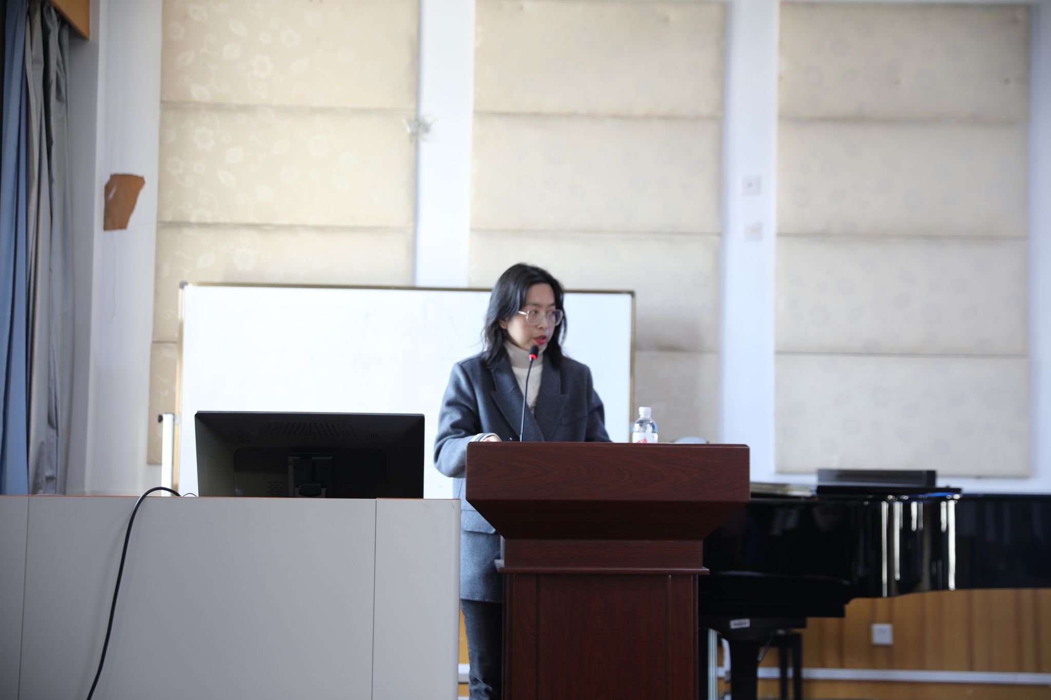 的简介、教师团队、教学活动、班主任日常、个人感悟、工作内容、音乐课堂、实习收获等方面进行了精彩发言,他们不仅为大家展现了此次实习的成果,也是一次深刻全面的实习总结。随后由实习负责人李葳老师对本次21级音乐学(师范)学生实习工作进行了总结讲话,肯定实习学生们的优异表现,并对学生们的将来寄予了厚望。